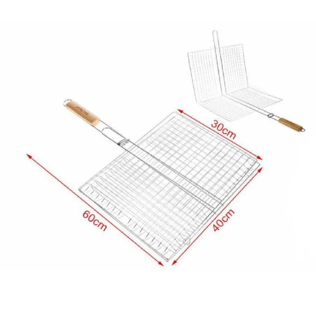 - 1 x Graticola griglia a rete doppia per barbecue 60x40x30cm con manico in legno