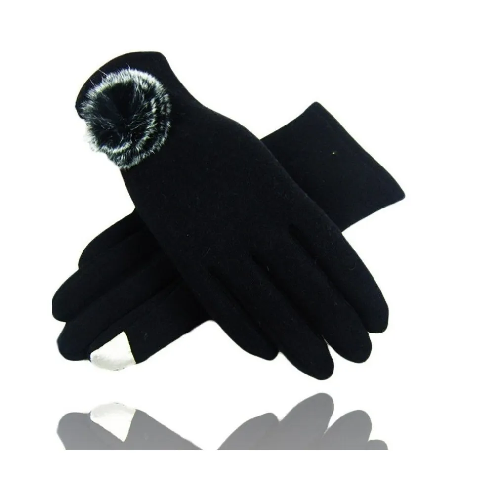 Guanti Tessuto Nero Cotone Pon Pon – Taglia 8