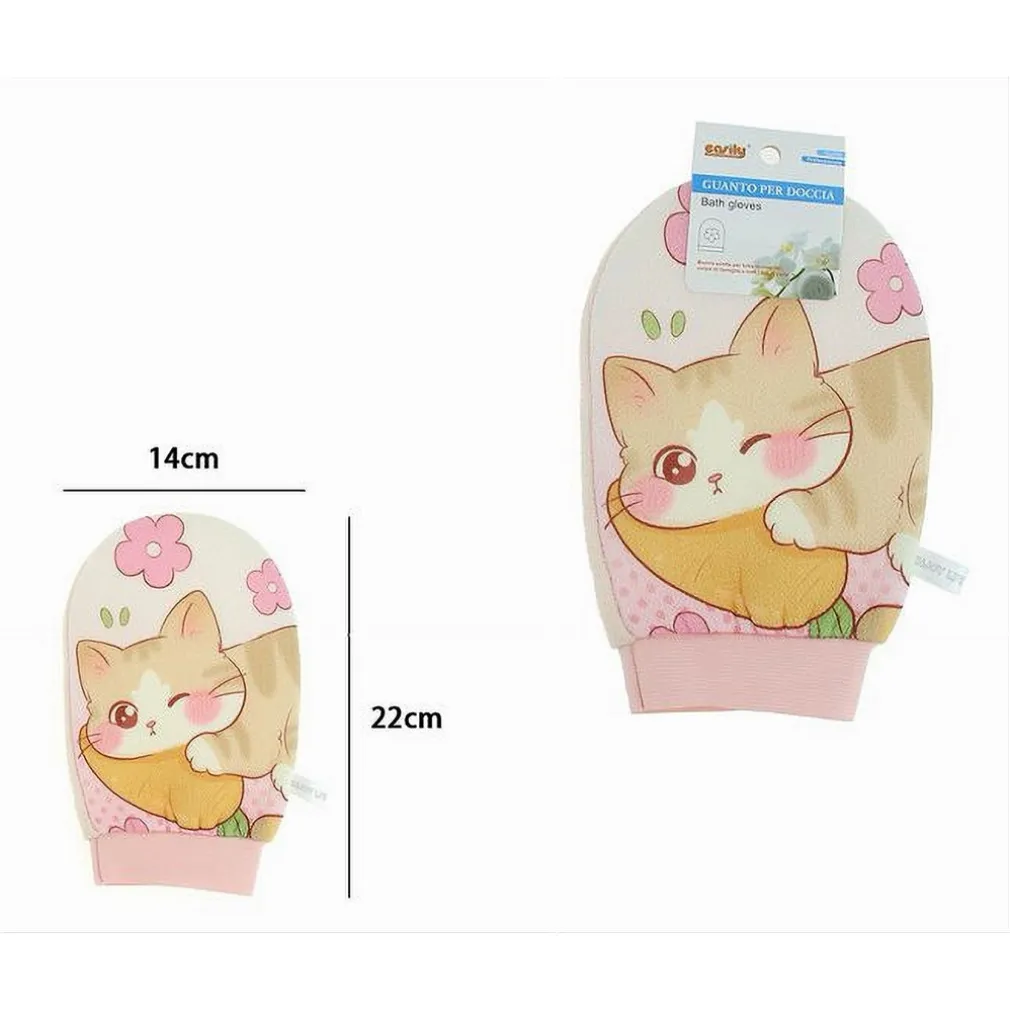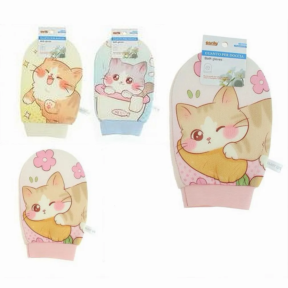 Guanto Spugna per Doccia – Bagno Esfoliante Cura Pelle Corpo con Fantasia Gatti 10743