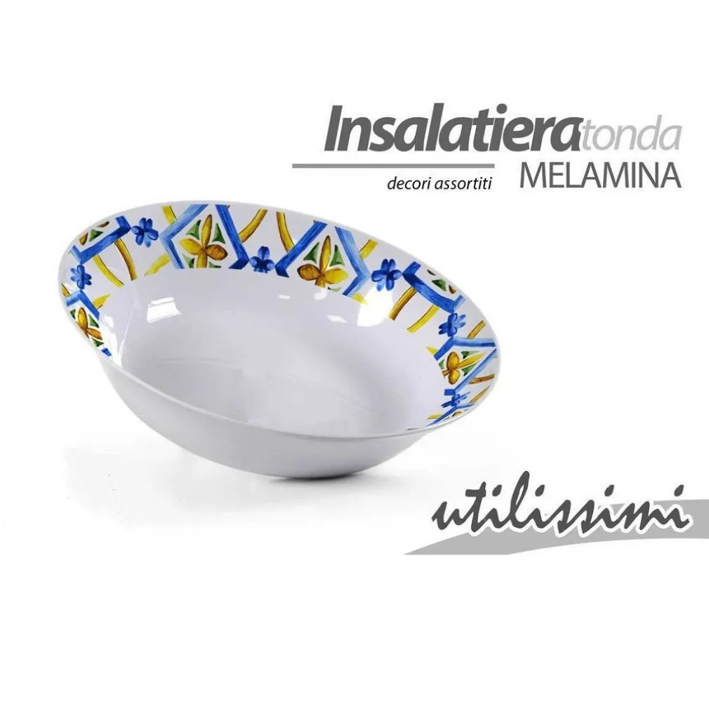- 1 insalatiera ciotola tonda melamina terra 18cm plastica decori assortiti