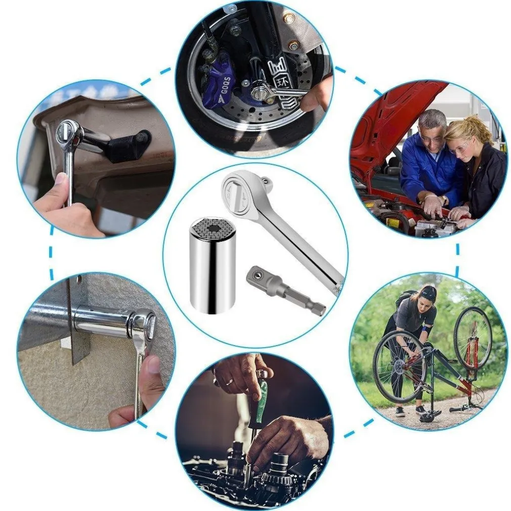 Chiave a bussola universale; Una sola chiave con cricchetto per tutte le misure di dado. Straordinaria chiave universale in grado di sostituire tutte le chiavi inglesi e non solo – svita e avvita praticamente tutto.