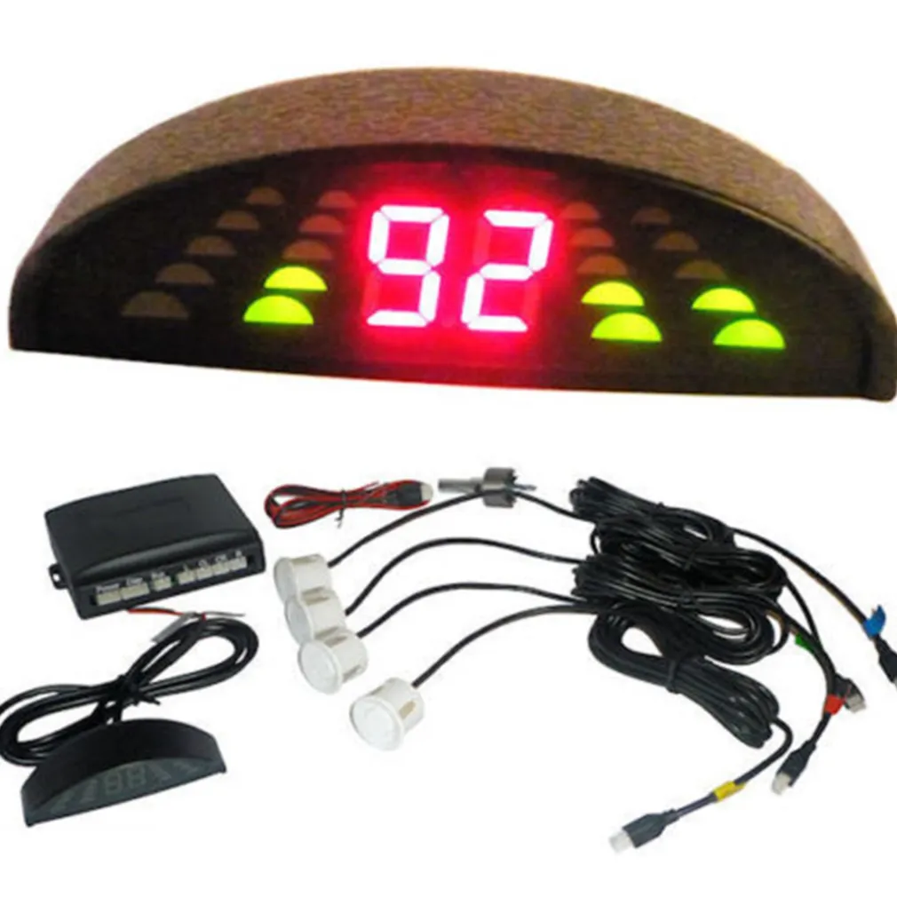 Kit sensori di parcheggio composto da 4 mini sensori di soli 22 mm di diametro, per l’applicazione su paraurti posteriori di qualsiasi autovettura. Mini display led con suono wireless. Fresa per i buchi al paraurti per i sensori.