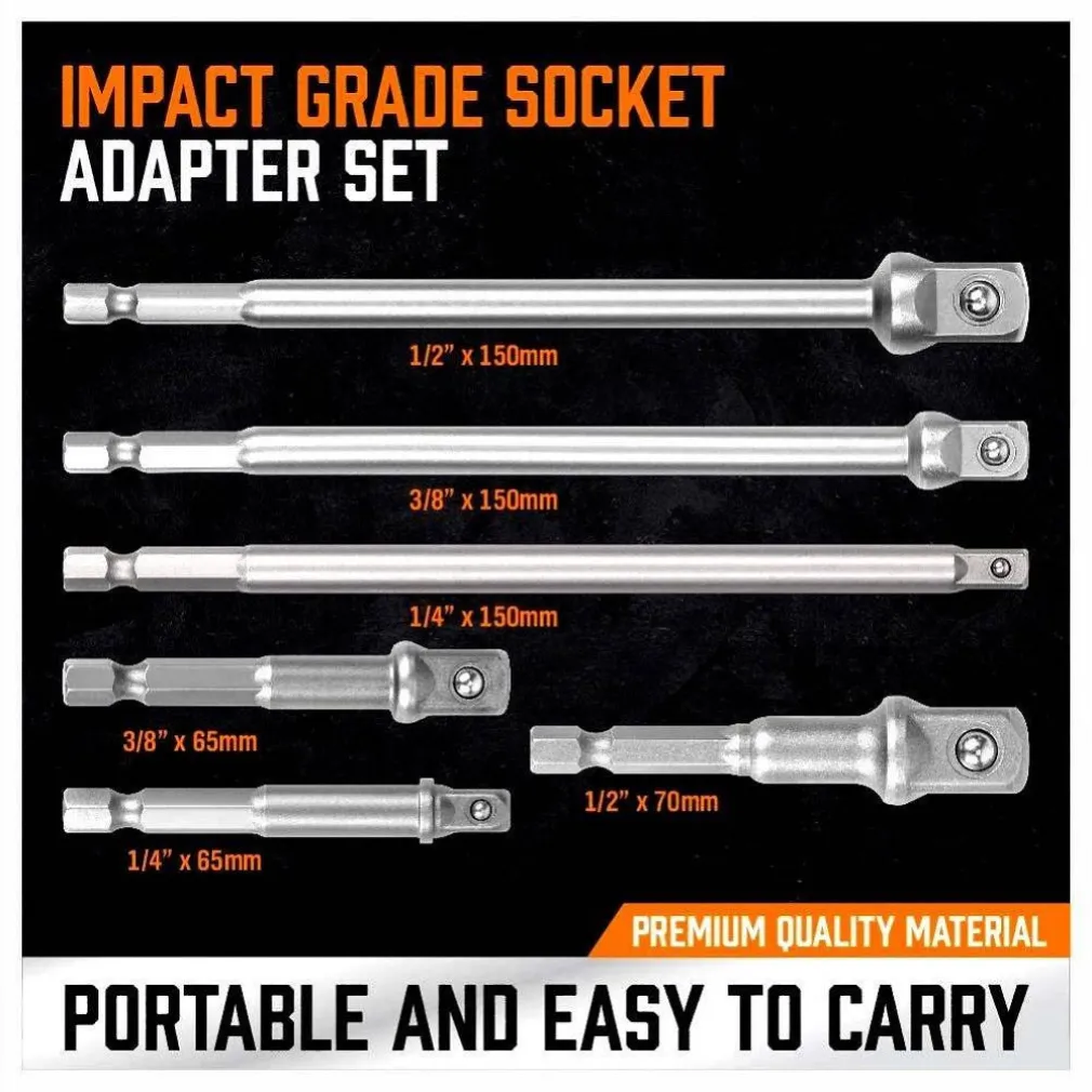 Kit 6 adattatori per chiavi a bussola quadrate impatto percussione 1/4″ 3/8″ 1/2″ 96033