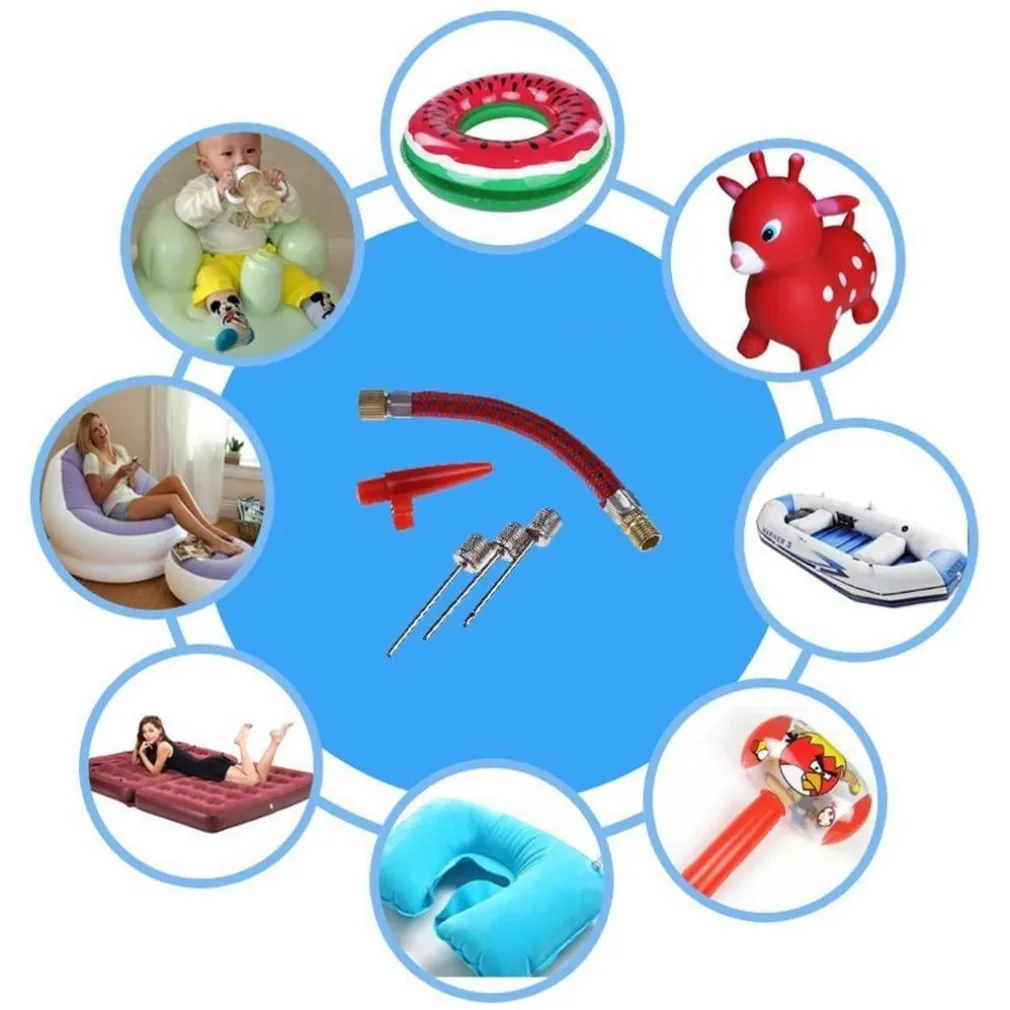 Diversità di Aghi: Il kit comprende una selezione di aghi progettati per adattarsi a diverse valvole e superfici, garantendo la massima compatibilità con una vasta gamma di oggetti gonfiabili.