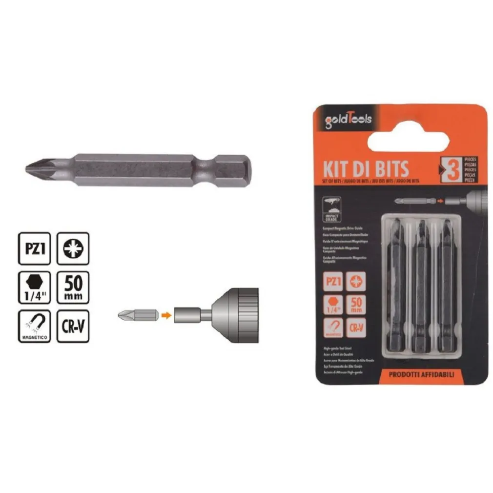 Se stai cercando una soluzione affidabile per il tuo lavoro di avvitatura, il nostro “KIT DI BITS 3 PZ BIT INSERTI PER AVVITATORE” è ciò di cui hai bisogno. Questo kit comprende tre pezzi di bit di alta qualità, progettati per migliorare notevolmente le tue prestazioni di avvitatura.