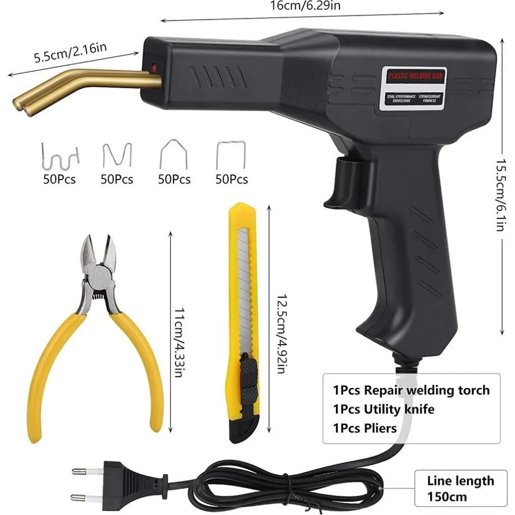 Design ergonomico per adattarsi al palmo della mano, l’impugnatura in gomma ha una presa comoda. Design con luce, ti fa vedere chiaramente la parte incrinata del paraurti. I punti metallici possono essere saldati rapidamente e facilmente nella plastica. La graffa in acciaio inossidabile non arrugginisce, il design ondulato delle graffette per il massimo carico. Il modo ideale per riparare i prodotti più moderni realizzati in plastica. Saldatore aria calda, forte per shock e twist dopo aver riparato la saldatura. Questo kit di strumenti per la riparazione della saldatura è progettato per riparare le parti in plastica dell’auto. Non danneggerà la superficie dell’auto, molto robusto e manterrà una lunga durata. Forte per urti e torsioni dopo la riparazione. Il punto metallico in acciaio inossidabile non arrugginisce. Questo kit di riparazione in plastica per sistemi di saldatura verrà fornito con vari tipi di Graffette per soddisfare le diverse esigenze.