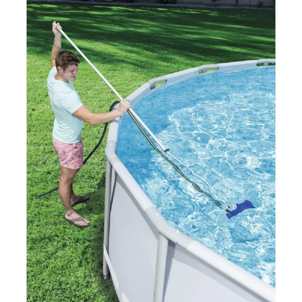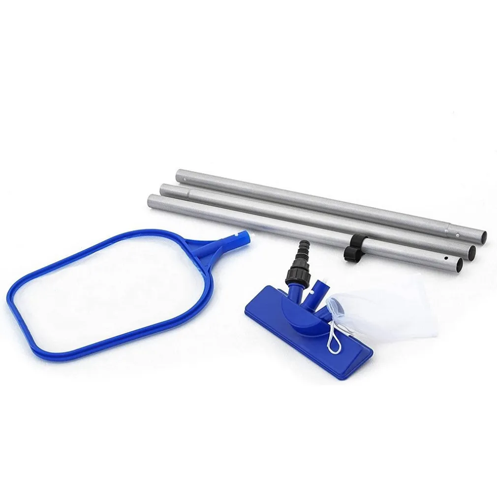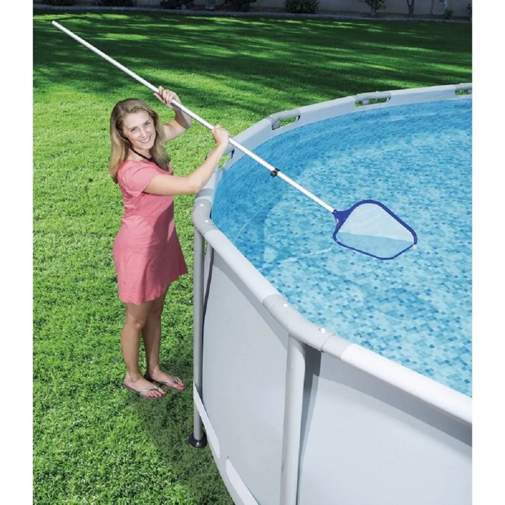 Il kit di manutenzione per piscine è lo starter kit perfetto per la pulizia e la manutenzione di piscine. Il kit comprende un palo in alluminio, una testa intercambiabile e skimmer. La testa di aspirazione della piscina si collega al palo e utilizza un tubo da giardino standard per l’aspirazione. Non sono richiesti strumenti. I detriti sciolti vengono aspirati in un sacchetto per foglie rimovibile e riutilizzabile. Il retino ha una rete a maglie resistente per raccogliere detriti indesiderati. Mantieni pulito il pavimento e le pareti della piscina per tutta la stagione!