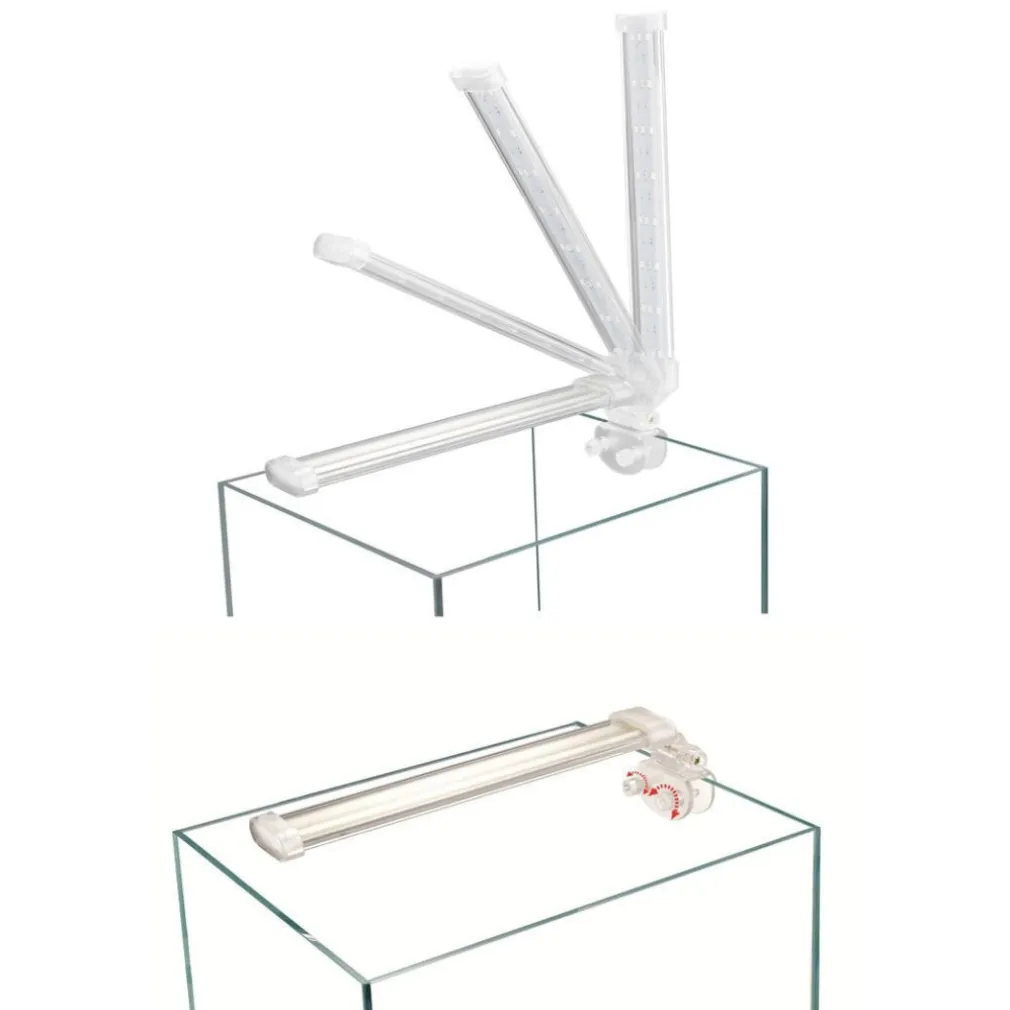 Lampada led esterna per acquario, grazie alla sua luminosità favorisce la crescita di piante e l’abitabilità perfetta ai pesci, completa di alimentatore e morsa per il fissaggio a bordo del vostro acquario collegandola alla rete 220volt. La lampada ha un comodo interruttore che permette di spegnerla comodamente, alta luminosità e bassi consumi