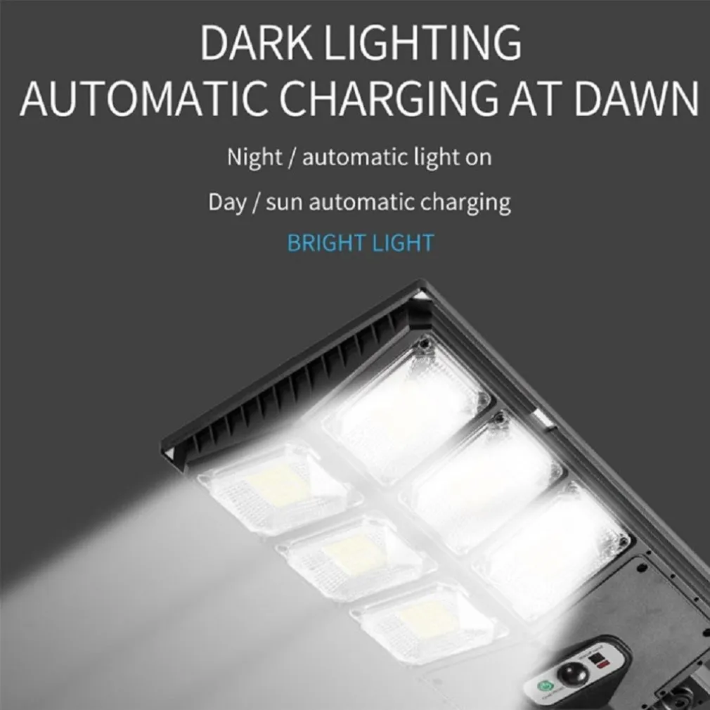 Induzione intelligente Solar Street Light, Risparmio energetico e protezione ambientale. Batteria da 3000 mAh integrata, il pannello solare funziona durante il giorno per riporre l’elettricità e può funzionare in modalità sensore movimento per 12 ore di notte. Corpo della lampada completamente sigillato, materiale isolante in plastica ABS, impermeabile e resistente. 3 diverse modalità di illuminazione, con un telecomando portatile per un facile controllo. Adatto per porte, cortili, corridoi, giardini e altri luoghi, facile da installare, nessun cablaggio richiesto. Brillante SMD2835 Chip a LED, ampia area di illuminazione, proiettore fino a 60 metri quadrati.