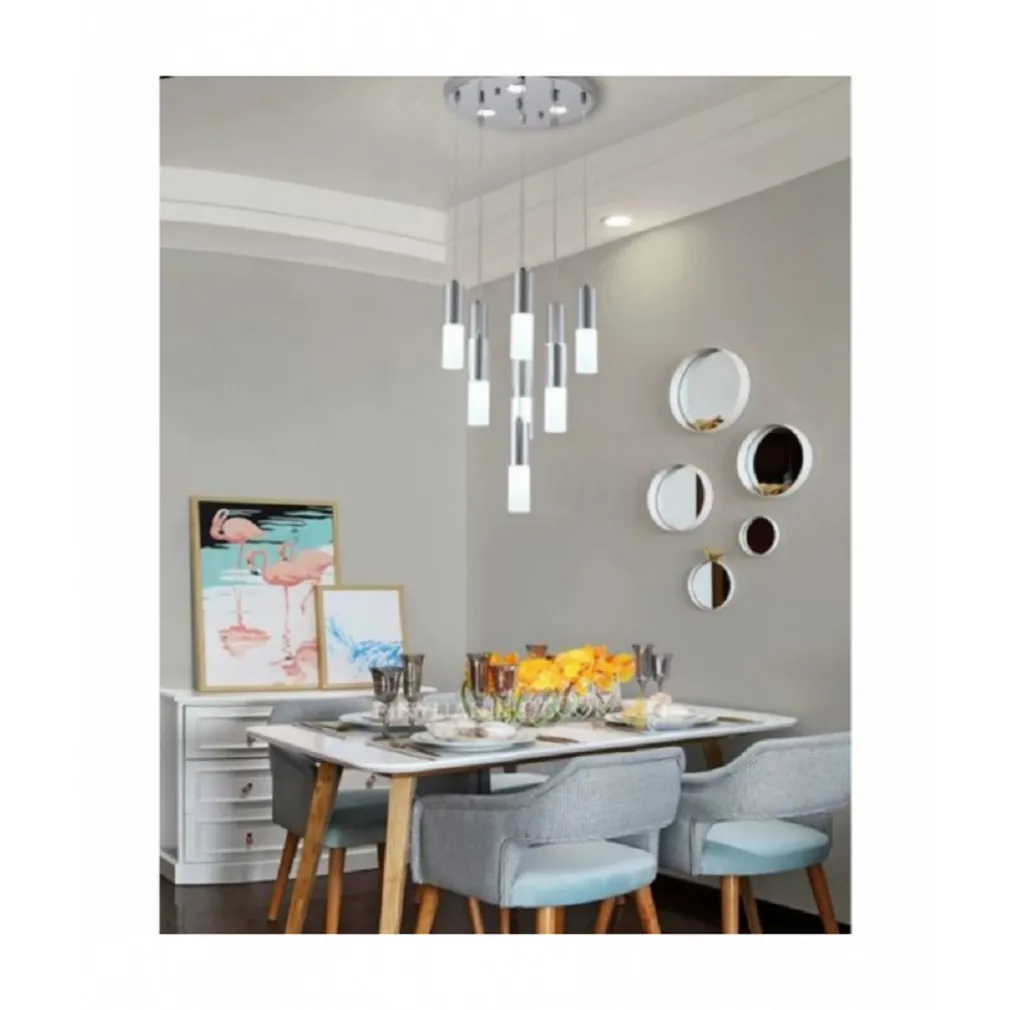 Lampadario a sospensione CILINDRI design a cascata in metallo e vetro. Stile semplice, design moderno, stile a cascata con cilindri in vetro effetto sabbiato e metallo, questo lampadario è la scelta ideale per arredare i tuoi spazi e creare un effetto davvero speciale. Il lampadario è realizzato in metallo e vetro. Materiali di alta qualità e una manifattura eccellente, rendono il lampadario resistente, bello, elegante e facile da pulire. Diffonde la luce in maniera uniforme e crea un ambiente confortevole. Perfetto per illuminare open space, soggiorni, cucine, ma anche per arredare locali come hotel, alberghi, ristoranti.