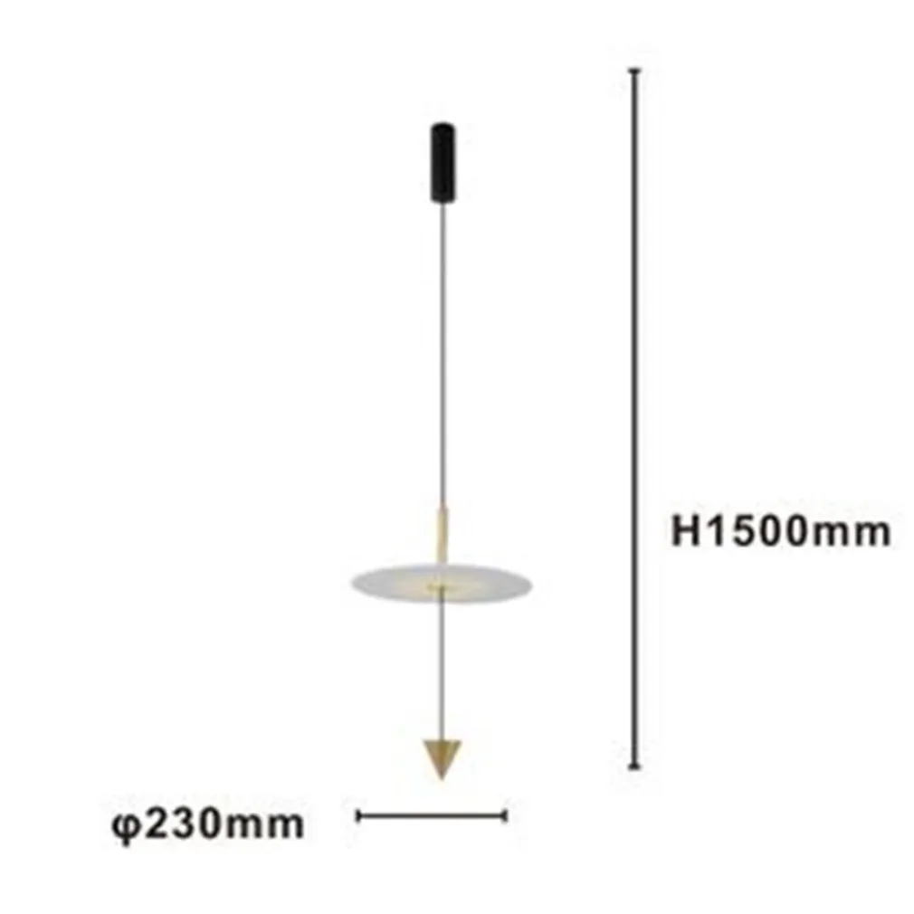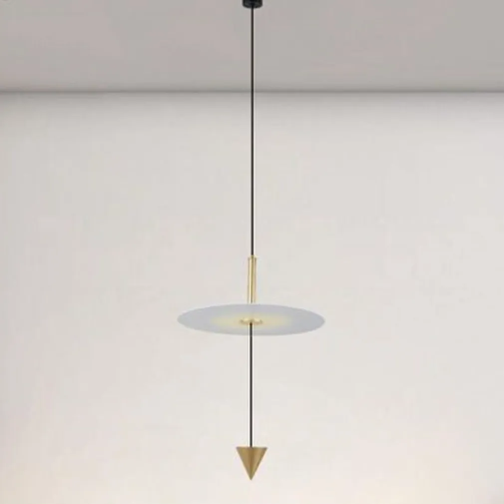 Scopri il lampadario a sospensione con luce LED da 12W che unisce estetica sofisticata e funzionalità. Questo capolavoro di design presenta una struttura composta da una base cilindrica, un disco bianco sospeso e un cono rovesciato in oro, creando un’elegante combinazione di forme geometriche. L’effetto finale è un gioco armonioso di pesi e contrappesi che dona al tuo ambiente un’illuminazione soffusa e accogliente, perfetta per creare la giusta atmosfera senza appesantire gli spazi.