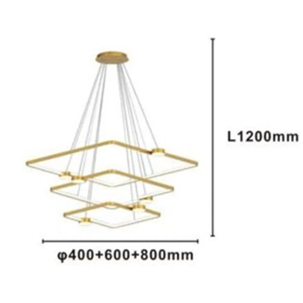 Se stai cercando un lampadario a sospensione che unisca design moderno, funzionalità avanzate e materiali di alta qualità, il nostro LAMPADARIO A SOSPENSIONE LED 112W 3 QUADRATI è la soluzione perfetta per illuminare la tua casa con stile. Con i suoi 3 quadrati di color oro e un telecomando multifunzionale, questo lampadario è l’ideale per chi desidera un’illuminazione versatile e un design unico.