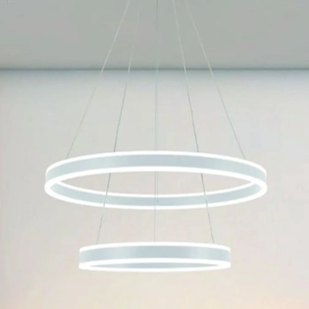 Questo lampadario è la soluzione perfetta per chi cerca un’illuminazione sofisticata, ma con un tocco di innovazione. Il design a doppio cerchio non solo illumina, ma aggiunge anche un elemento di eleganza al tuo spazio, facendolo diventare il protagonista del tuo arredamento.