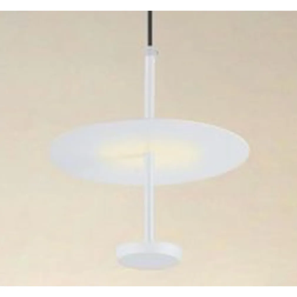 - Lampadario a sospensione completo di paralume piatto bianco.