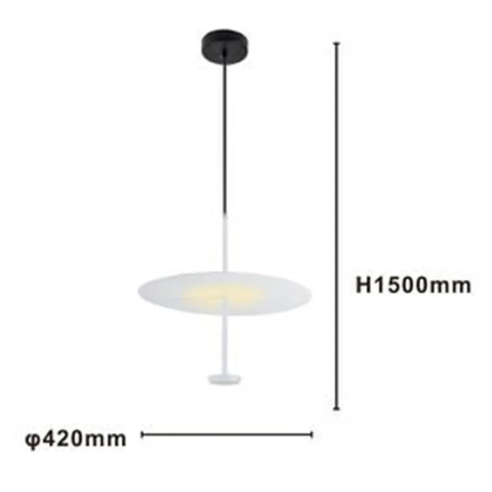 - 1 x Lampadario a sospensione LED 18W con paralume piatto bianco rotondo.