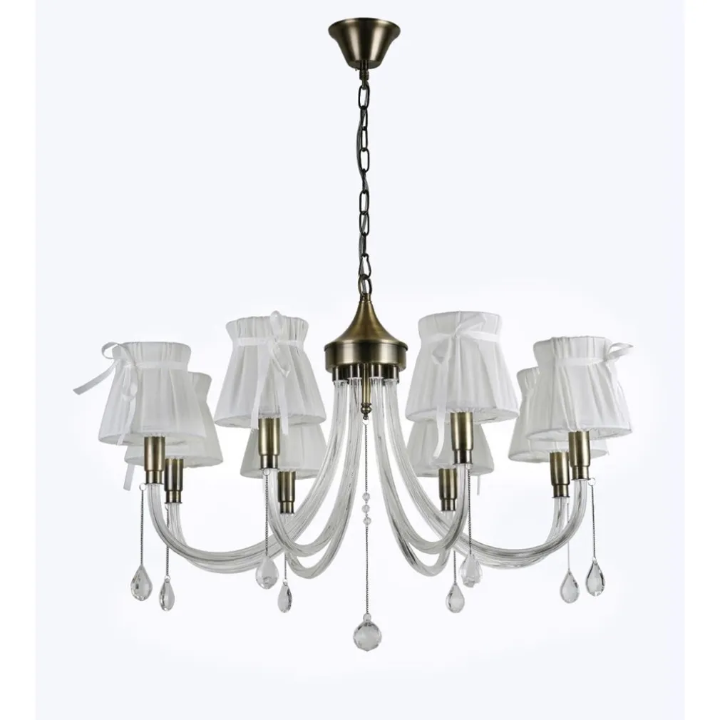 - Design classico ed elegante: Un lampadario a 8 bracci con una struttura in bronzo e decorazioni in tessuto bianco, che si inserisce perfettamente in ambienti dallo stile tradizionale o contemporaneo.