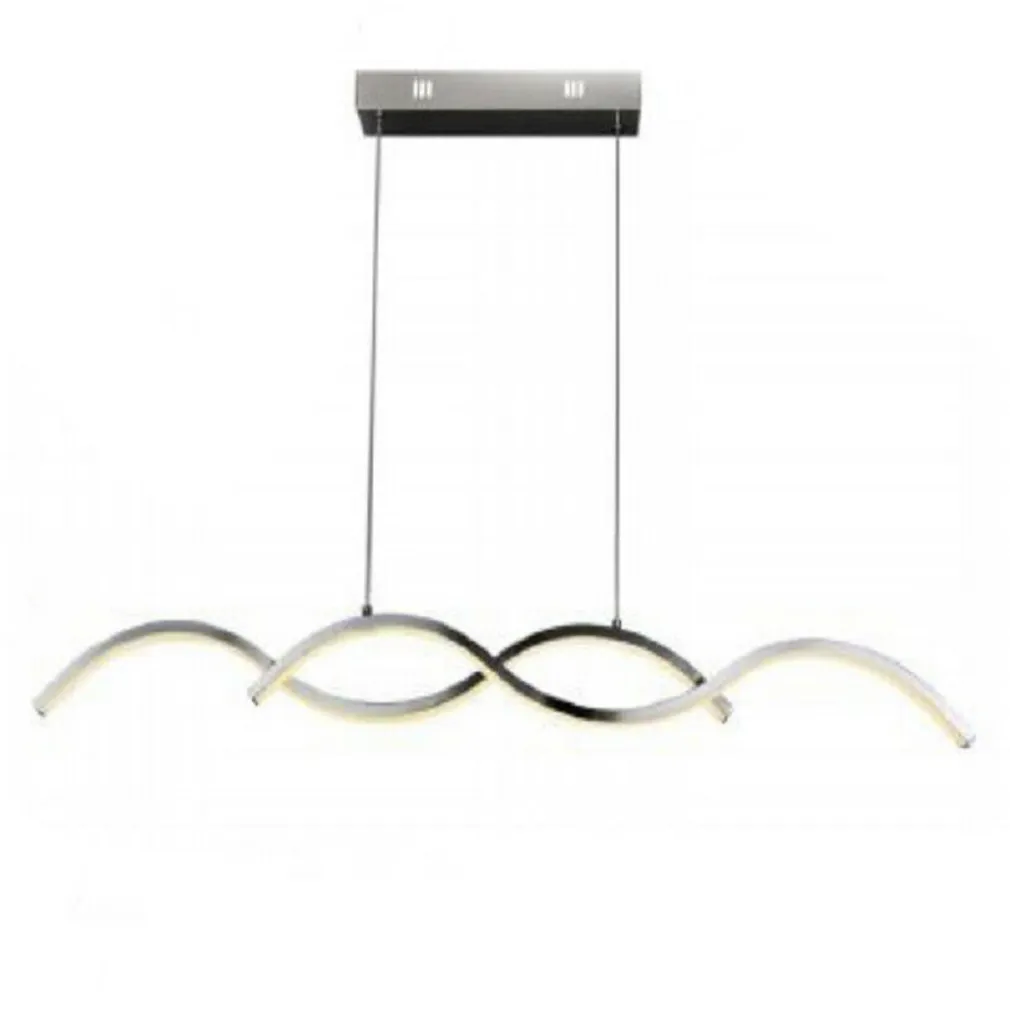 Lampadario sospeso a led dal design moderno e innovativo. Grazie al suo design unico si integra alla perfezione in un ambiente arredato in stile moderno. Formato da due raffinate spirali di metallo che si incrociano tra di loro. Se necessario, è possibile regolare la lunghezza delle corde.
