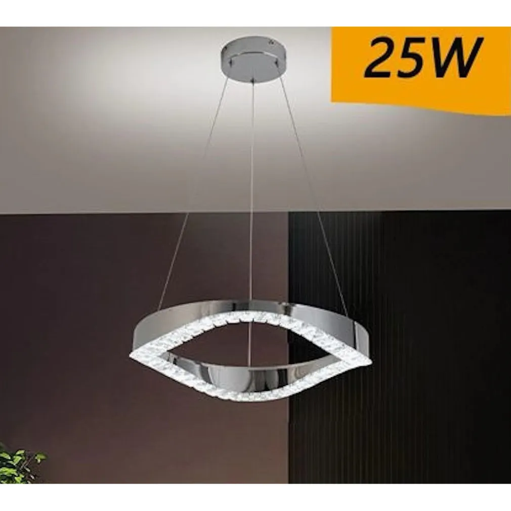 LAMPADARIO LED SOFFITTO 25 W SOSPESO IN ACCIAIO CRISTALLO LUCE FREDDA 8000K B72