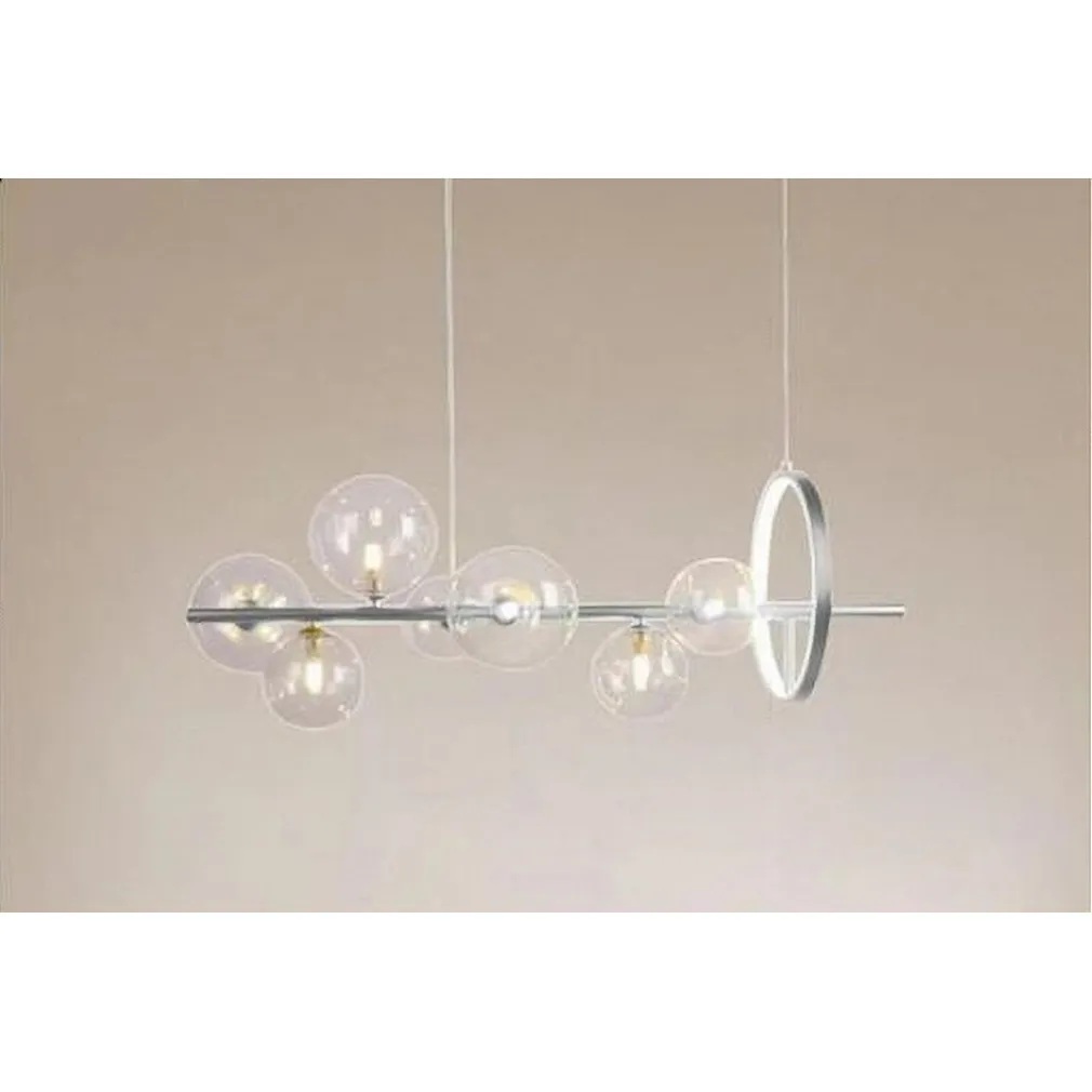 Rendi unico il tuo spazio con il Lampadario Moderno a Sospensione Argento 7 Sfere G9 Bolle in Vetro. Eleganza, funzionalità e flessibilità in un’unica soluzione d’illuminazione che non può mancare nella tua casa o attività.
