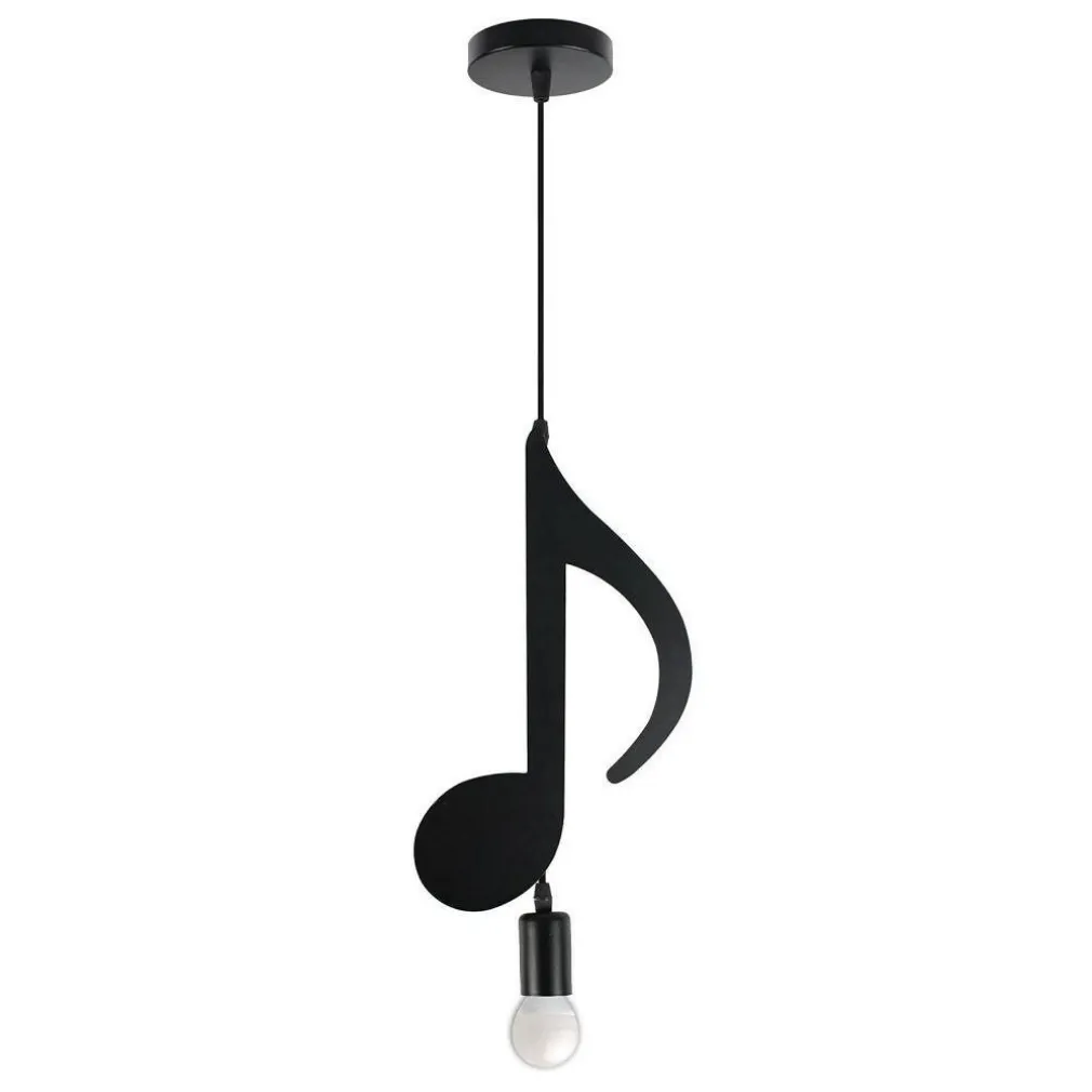 Arreda i tuoi spazi interni con un tocco di creatività, acquista i nostri lampadari con forma di nota croma. Lampadario a sospensione ideale per chi ama la musica e la creatività, perfetto da installare in ambienti domestici ma anche in negozi, lounge bar, pub, ristoranti. Realizzato in metallo nero opaco per dare un tocco originale ad ogni ambiente. Compralo in abbinamento con gli altri lampadari di questa linea per creare un effetto ancora più affascinante e divertente per le tue stanze. Bellissimo lampadario ideale per tutti gli amanti della musica perfetto da installare nel soffitto di una cameretta o della sala da pranzo.