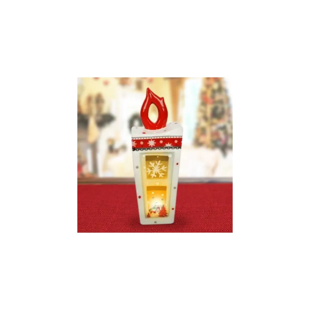 Realizza una meravigliosa e calda atmosfera natalizia con questa bellissima lanterna a forma di candela con scenario. Realizzata interamente in ceramica con al centro un vetro con una piccola scenografia natalizia, che viene illuminata dalla candela a pile posizionata all’interno della lanterna.