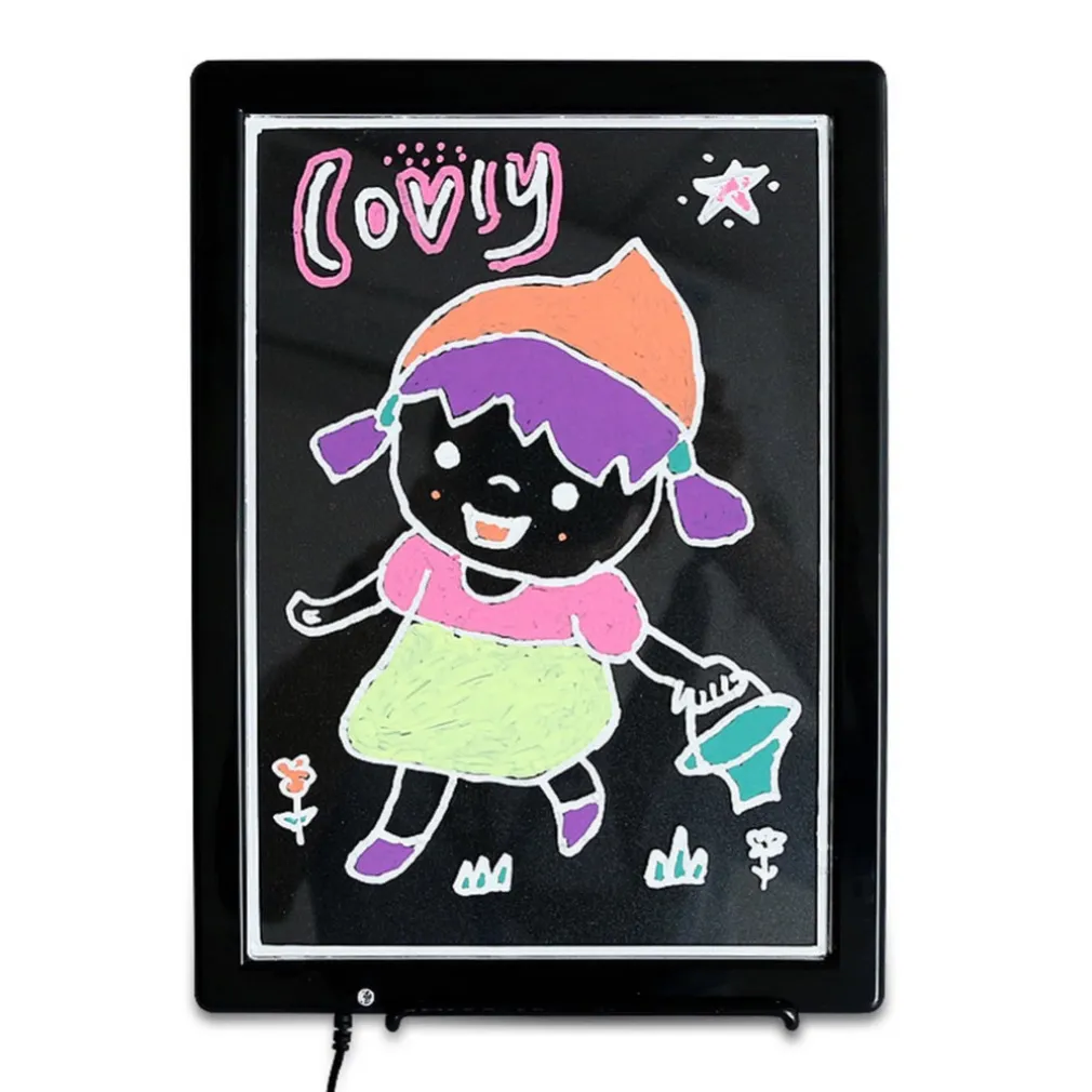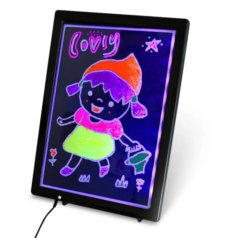 la lavagna luminosa a led, funziona con la tecnologia della luce led, eccezionale per pubblicizzare i proprio prodotti, per attirare l’attenzione dei passanti, per bar ,pub, ristoranti, gelaterie, negozi e tutte le attività commerciali in generale facilissima da usare si può scrivere e cancellare quante volte si vuole, inoltre si può scrivere quello che ognuno ritiene opportuno (promozioni, sconti, offerte speciali) con le 13 diverse modalità di lampeggiamento attira’ inevitabilmente tutti ottima per uso interno e anche uso esterno