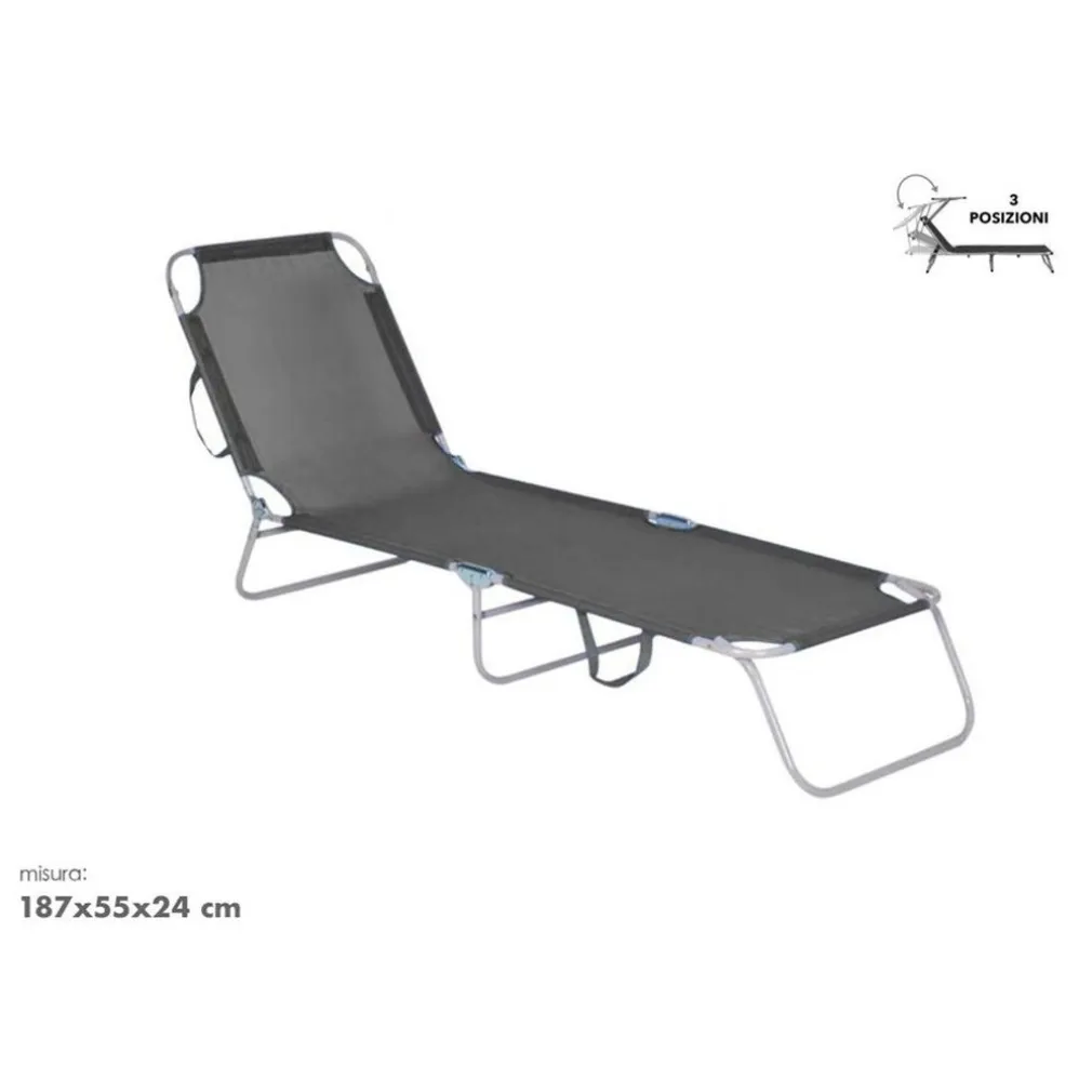 LETTINO IN TEXTILENE GRIGIO PER MARE GIARDINO SCHIENALE REGOLABILE IN 3 POSIZIONI 281046
