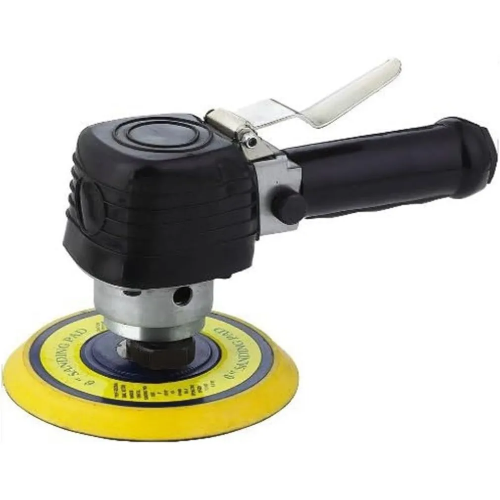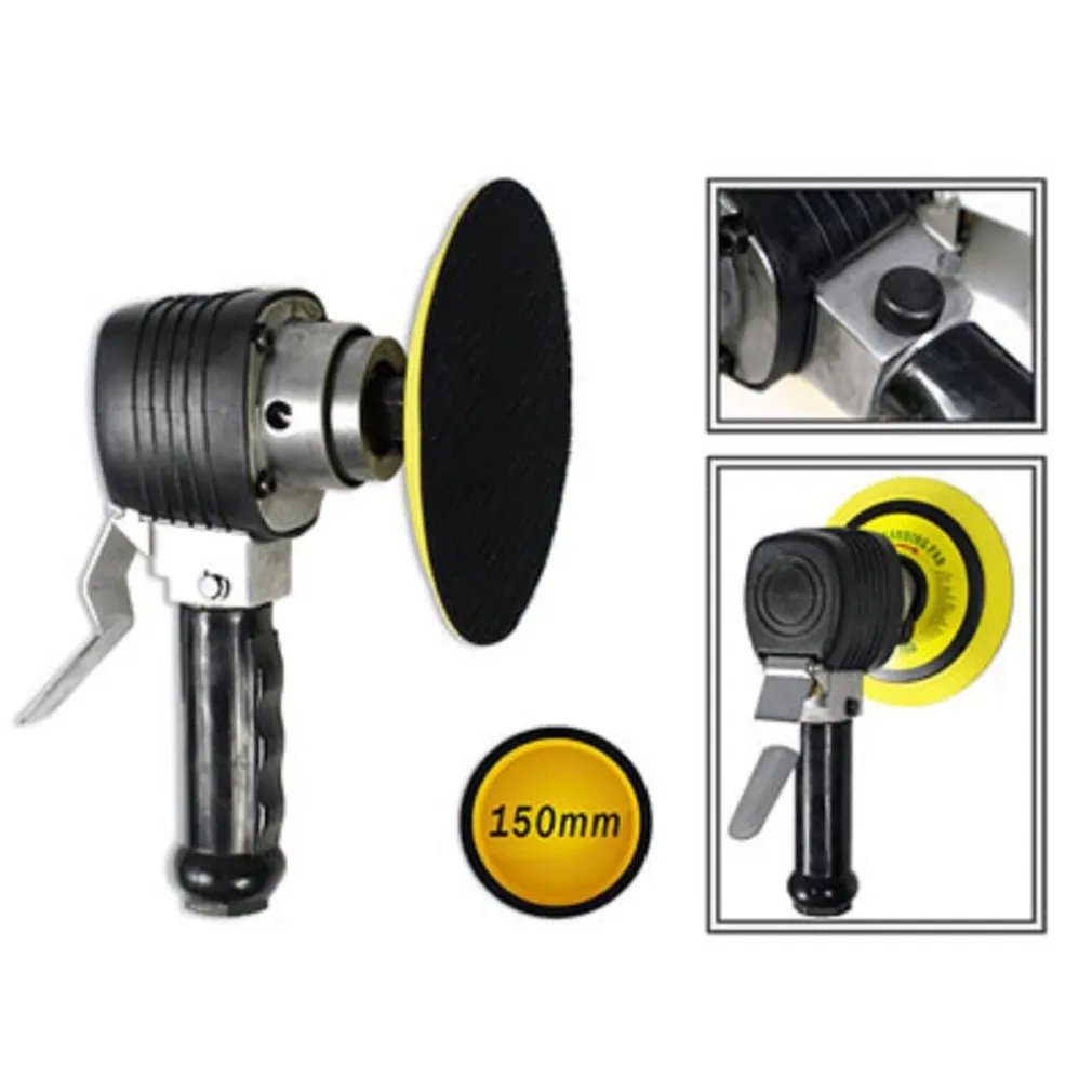 Levigatrice ad aria compressa utile per una rifinitura finale. Si contraddistingue per il movimento orbitale ed eccentrico che riduce il rischio di surriscaldamento della superficie. Dispone di un platorello di 15cm, da avvitare alla levigatrice, con base in velcro, per l’utilizzo di dischi abrasivi per levigare o panni, spugne e dischi in panno per lucidare. Manico antiscivolo per una salda presa e leva per azionare la levigatrice.