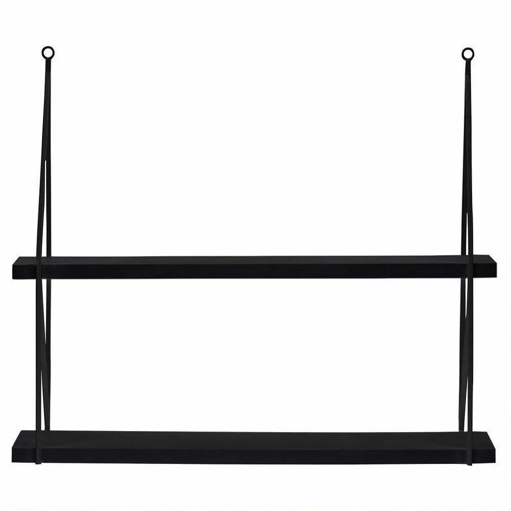 Libreria Mensole Scaffale Parete Design Moderna Legno Metallo 2 Ripiani Nero