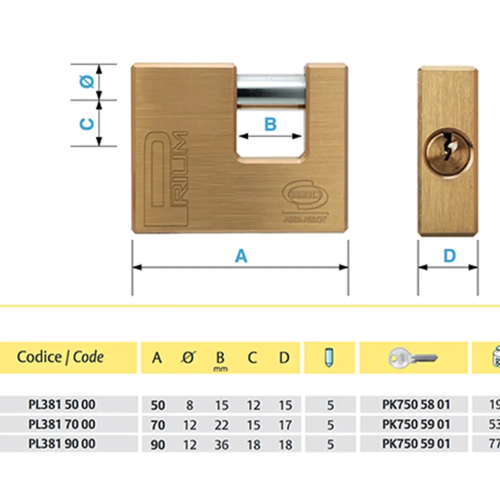 LUCCHETTO CATENACCIO ANTISCASSO OTTONE CORBIN MM 50 / 60 / 70 / 90