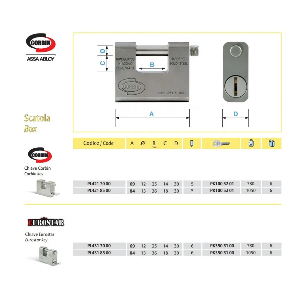 - • Chiave: 3 per lucchetto Estrazione chiave a lucchetto chiuso o aperto Piastrino antitrapano