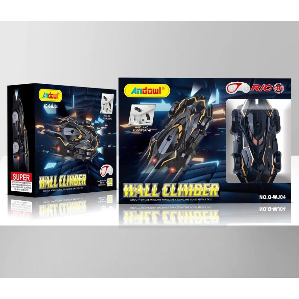 L’auto Wall Climber di Andowl è un fantastico giocattolo che sfida la gravità. Può essere applicato su pareti, soffitti e qualsiasi altra superficie piana grazie a un’esclusiva tecnologia di aspirazione. L’auto è controllata con un telecomando, permettendo al tuo bambino di fare tutti i tipi di acrobazie e divertirsi! Il motore di aspirazione è particolarmente potente in modo che l’auto antigravitazionale possa andare su qualsiasi superficie piana come pareti, vetro e persino sul soffitto! Corpo ultraleggero ma resistente e antiurto che non si rompe se cade dal soffitto o dalla parete. Viene fornito con telecomando a infrarossi, puoi controllare le velocità e le direzioni di corsa. Tecnologia di aspirazione: consente al pilota di arrampicarsi su pareti verticali e pareti di vetro a piena velocità e di guidare a testa in giù sui soffitti. Ruota di 360 gradi durante la corsa, l’avanzamento e la retromarcia. Ricarica le auto dal telecomando a infrarossi.