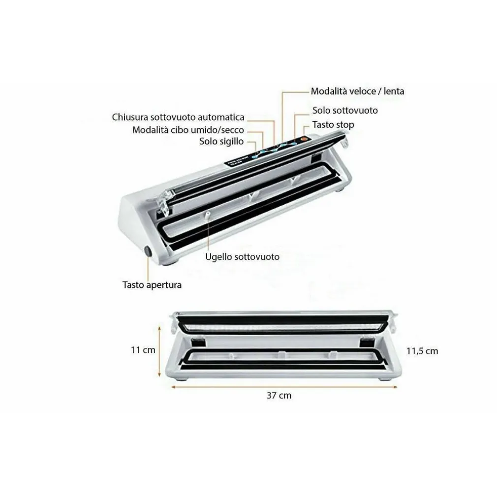 Macchina sottovuoto multifunzione, perfetta per proteggere e conservare gli alimenti, inoltre, con il tubo per sottovuoto, è perfetta anche per eliminare l’aria da contenitori, bottiglie di vino etc.