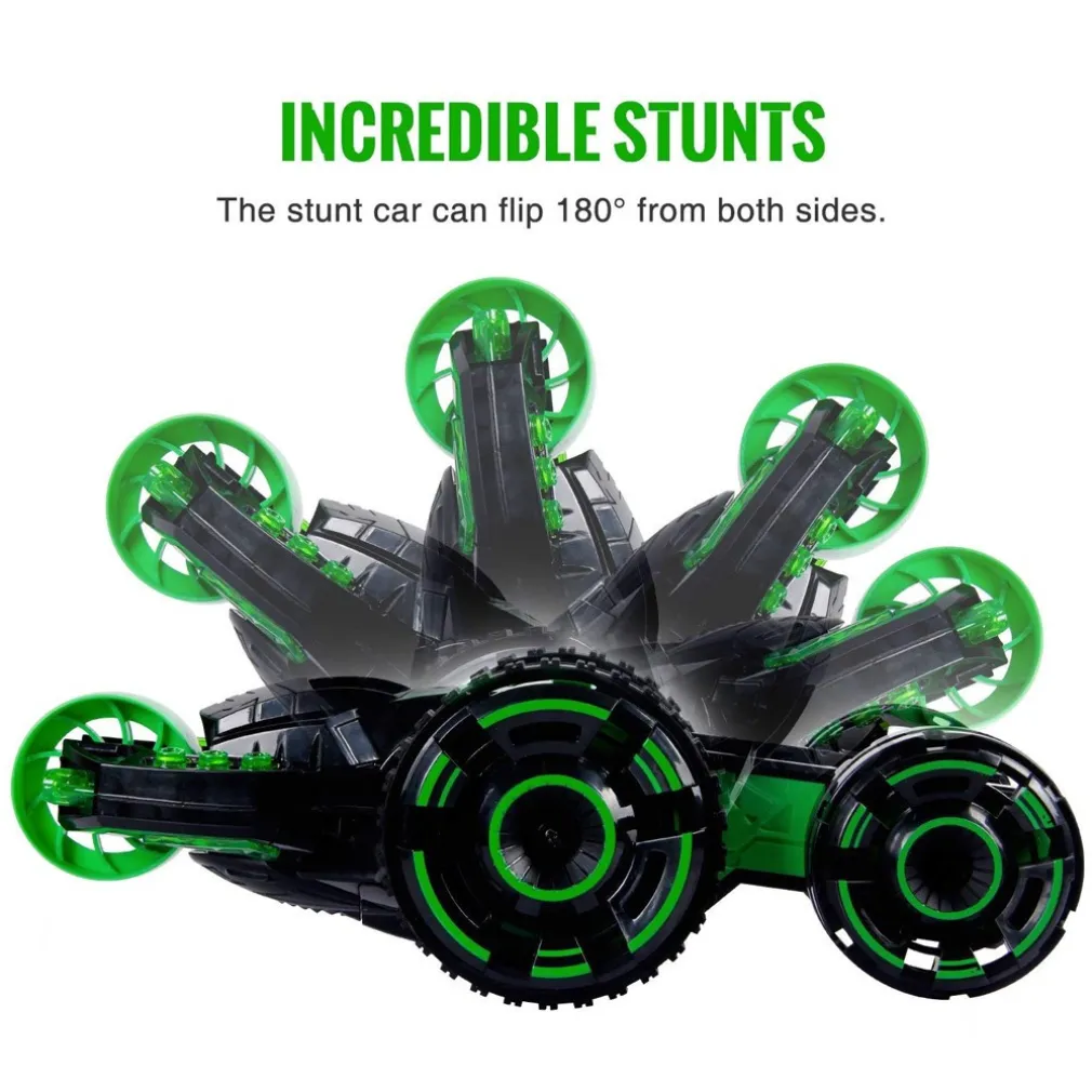 Disponibile in 2 colorazioni Rosso o Verde. Esegui spettacolari acrobazie con questa magnifica auto a 5 ruote!