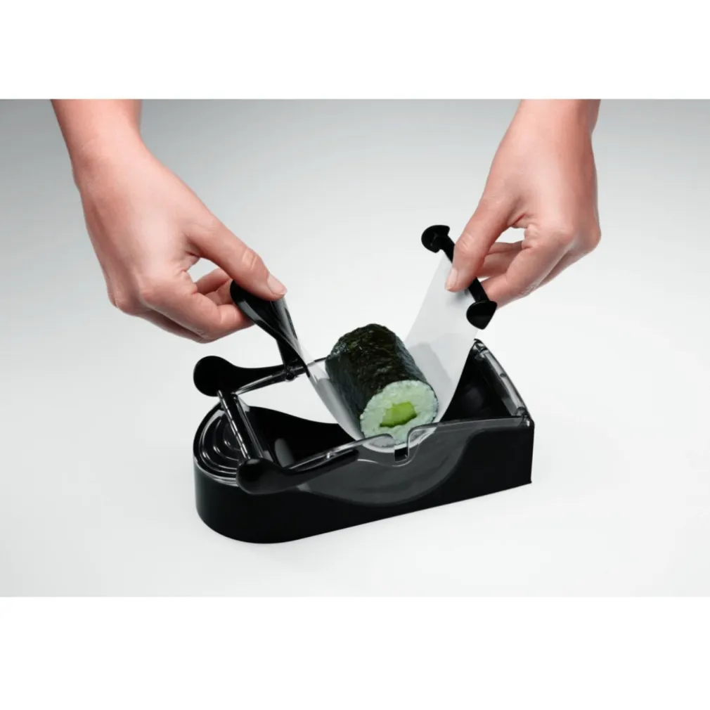 Basta infatti inserire nel contenitore una base di riso per Sushi, mettere al centro quello che si vuole avvolgere, bloccare il contenitore e tirare la linguetta di perfect roll.