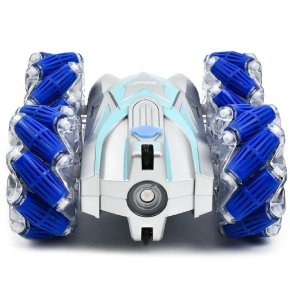 Auto telecomandata che sfida il percorso seguito dalle auto convenzionali. Può andare di lato, fare cerchi e continuare anche se si capovolge. Con straordinari effetti sonori e luminosi. Sembra reale! Adatto a tutti i terreni e ideale per il suolo.