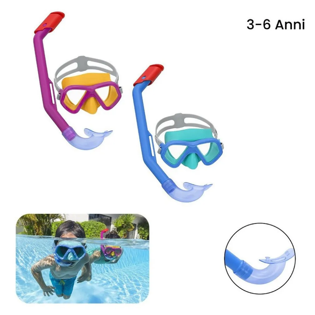 ll set Gliderè l’accessorio giusto per una divertente esperienza subacquea dei tuoi figli in piscina o al mare. Comprende una maschera e un boccaglio ed è disponibile in colori assortiti. Le lenti in stile aviatore sono in policarbonato e dotate di un doppio bordo molto comodo per assicurare una vestibilità ottima e resistente alle infiltrazioni. La maschera è dotata di un cinturino completamente regolabilee la tecnologia dry-top del boccaglio previene le infiltrazioni d’acqua.
