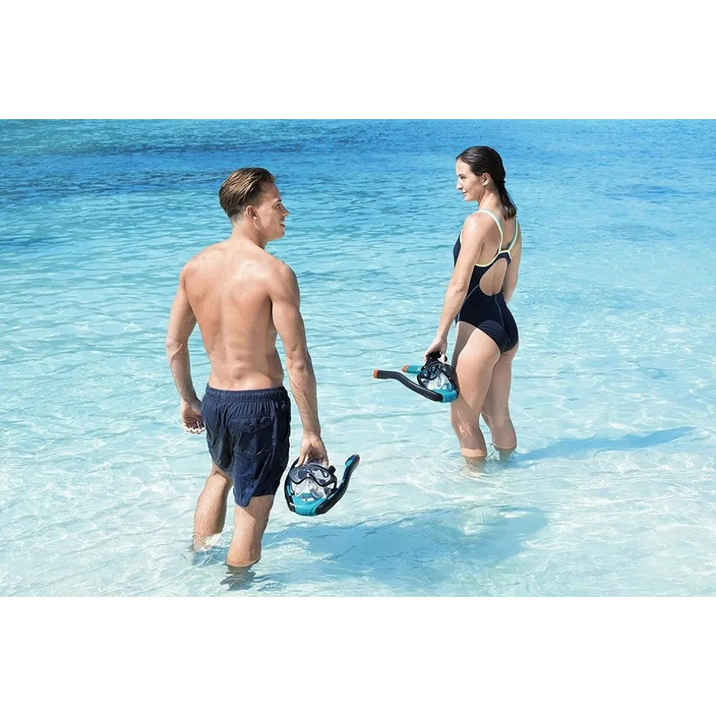 La maschera per lo snorkeling integrale è il sistema più efficiente. È giusta per tutte le tue avventure acquatiche preferite, tra cui snorkeling, nuotate ed esplorazioni in acque libere. Questa maschera innovativa di nuova generazione e il design del boccaglio ti consentono di respirare naturalmente attraverso il naso e la bocca mentre sei in acqua. La tecnologia a doppio flusso d’aria è stata progettata per far fluire l’aria dentro e fuori dalla maschera attraverso due aperture. L’avanzata tecnologia del boccaglio Dry Top impedisce all’acqua di entrare nella maschera quando è immersa. C’è un piccolo dispositivo di galleggiamento che sigilla la parte superiore del boccaglio, così puoi immergerti sott’acqua senza paura di far entrare acqua nella zona di respirazione. La morbida struttura integrale in silicone si adatta comodamente, consentendo anche di tappare il naso per equalizzare la pressione senza il fastidio di rimuovere la maschera. Mascera con boccaglio ideale per attività al mare, piscina, snorkeling. Divertiti in piena sicurezza!