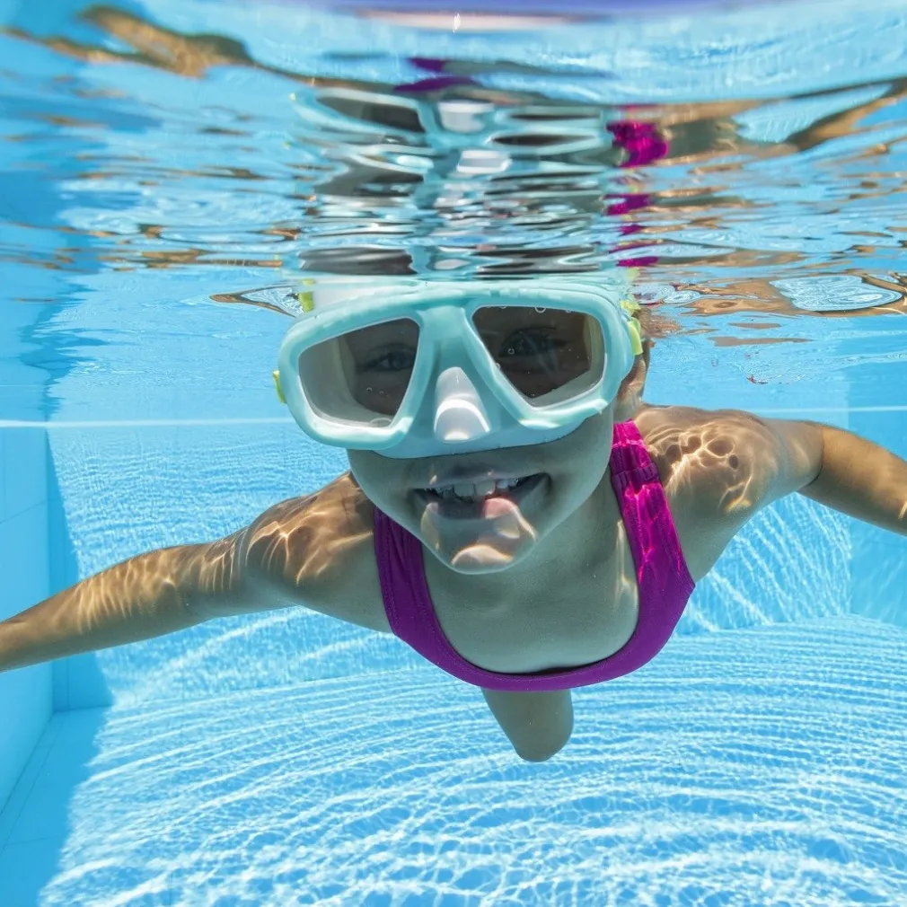 Maschera da sub Caymen con lenti in stile aviatore in policarbonato, con rivestimento protettivo UV, doppio bordo per evitare le infiltrazioni di acqua, con un massimo confort di calzata, laccio completamente regolabile, 100% priva di lattice, adatto a bambini di età da 3 anni in su.
