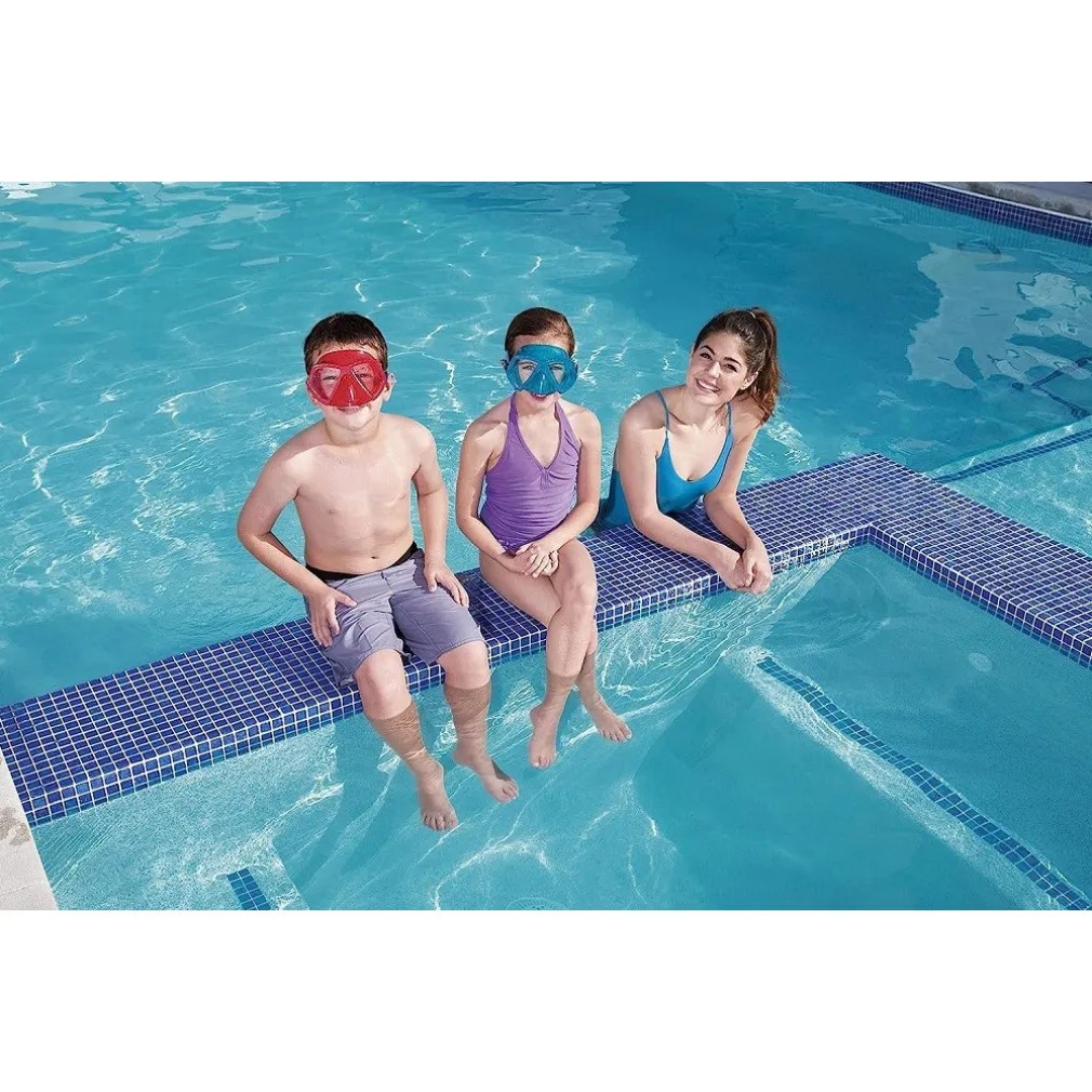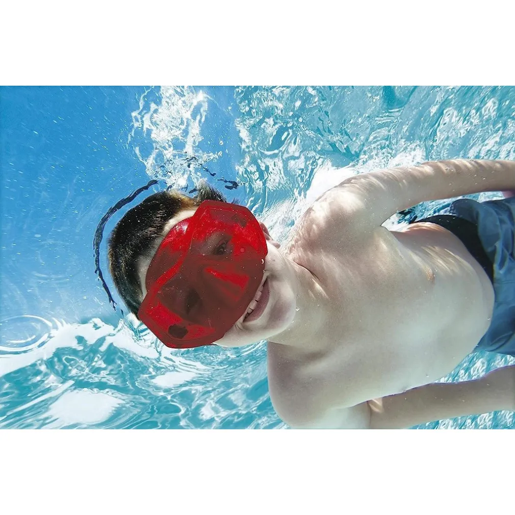 Le lenti in policarbonato sono dotate di un rivestimento anti-UV, per proteggere gli occhi dei nuotatori, mentre il coloratissimo facciale aderisce ottimamente ma in modo confortevole al viso, impedendo all’acqua di entrare. In più, il cinturino è completamente regolabile, quindi può essere stretto o allentato attorno alla testa secondo necessità.