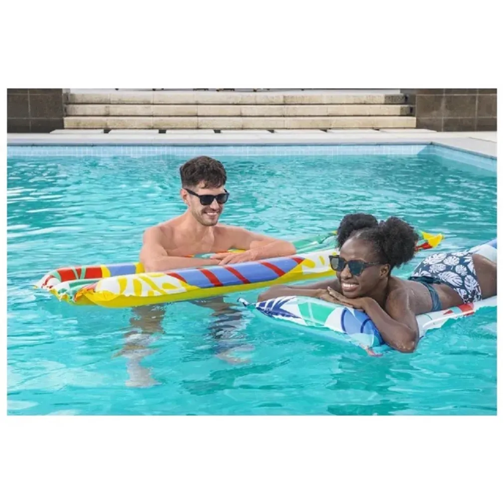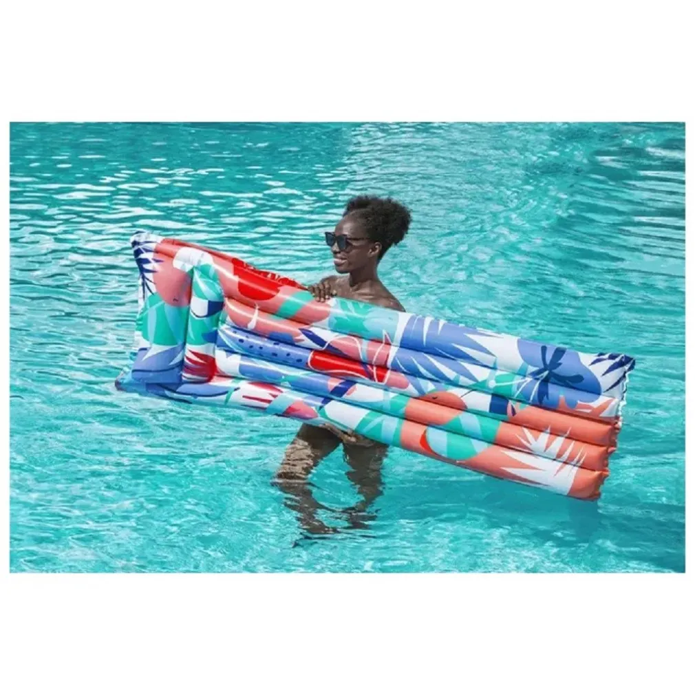 Questo innovativo materassino è disponibile in design assortiti, è dotato di un cuscino a 2 camere per un maggiore comfort e supporto mentre ti rilassi al sole.