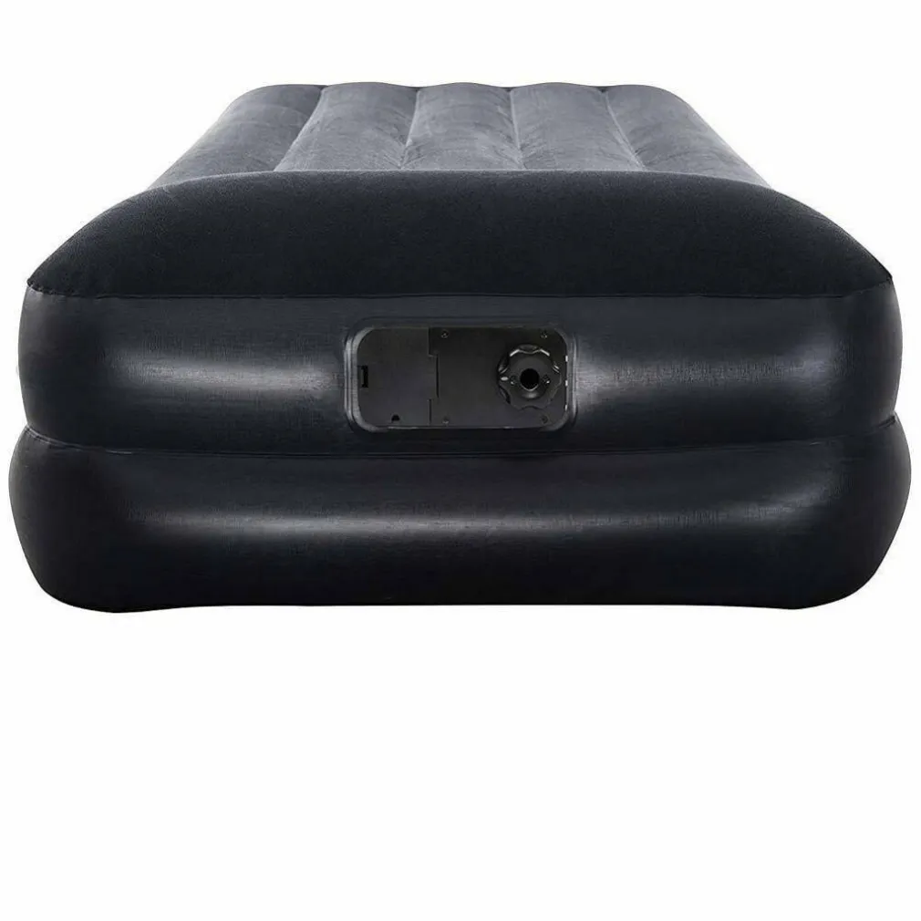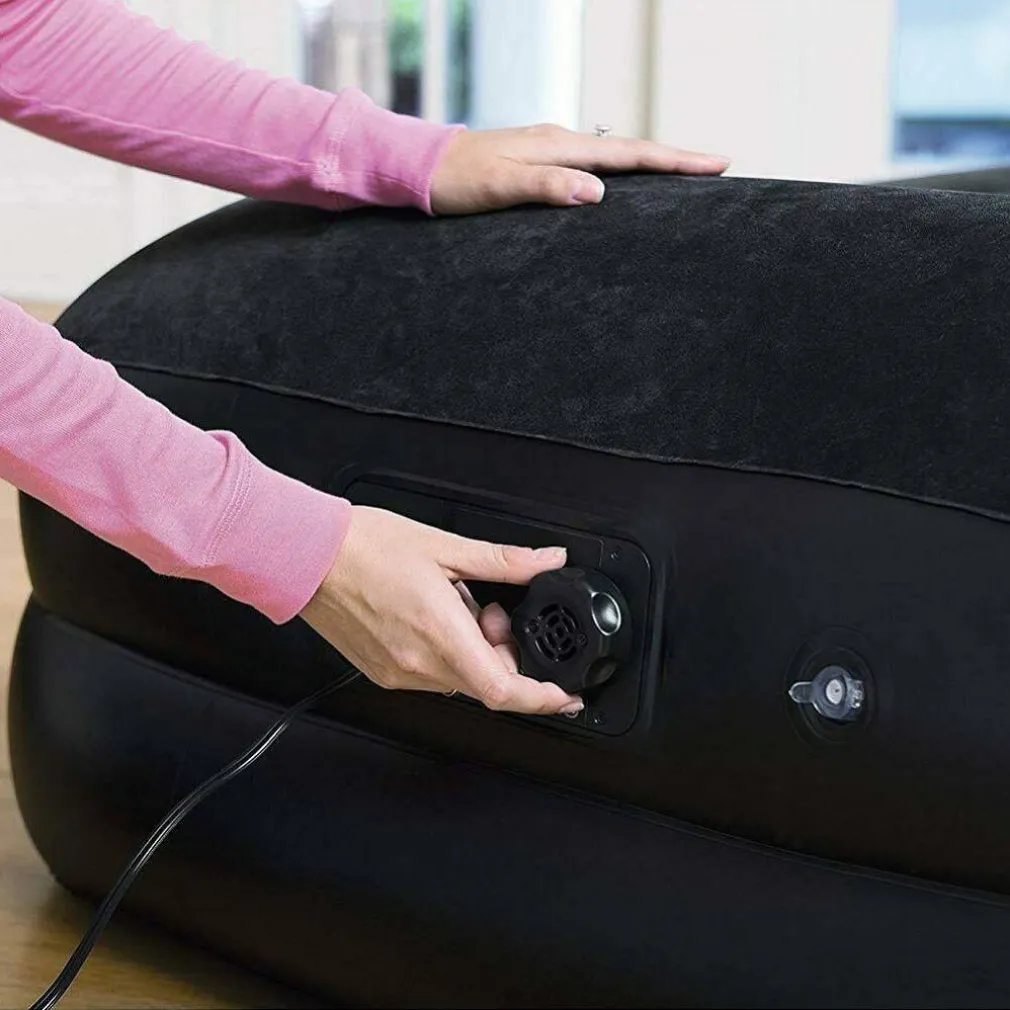 Facile da installare, affidabile e resistente. Il letto ad aria singolo felpato presenta una robusta struttura profilata e sara perfetto per il campeggio, per sistemare gli ospiti per la notte o semplicemente per rilassarsi in giardino, nel patio, ecc. La superficie felpata di questo materasso ad aria aiuta a far si che le lenzuola stiano al loro posto ed è molto confortevole. Questo leggero materasso gonfiabile, con una lunghezza di 191 cm, può essere gonfiato fino all’altezza di 46 cm e offrirvi un’ottima notte di sonno in campeggio. Il materasso ad aria è dotato di una pompa elettrica integrata e può essere gonfiato e sgonfiato velocemente. Può essere anche ripiegato con facilita per stoccarlo o trasportarlo quando non viene usato.