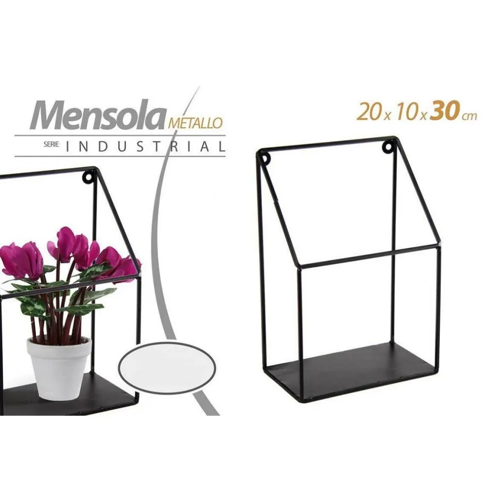 - 1 x Mensola bacheca Parete Metallo Classic Moderno Industrial 20x10x30cm Nero 822247
