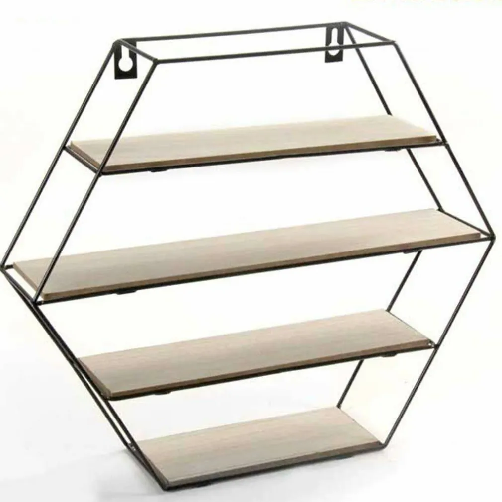 Mensola Parete Esagonale 4 Mensole Ripiani Design Moderno Scaffale Legno Metallo
