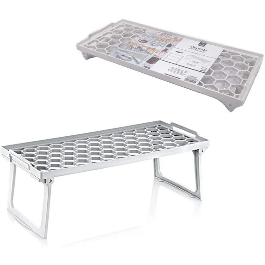 MENSOLA SALVASPAZIO PIEGHEVOLE IMPILABILE BIANCA 13X30CM BASE TRAFORATA PIEDI CHIUDIBILI