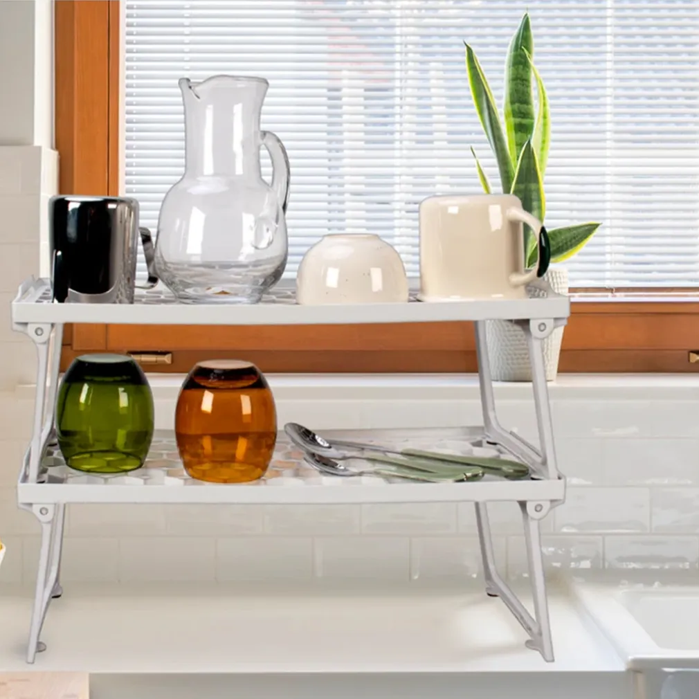 Rendi la tua cucina più ordinata e funzionale con la mensola salvaspazio pieghevole. Questo accessorio è pensato per chi desidera ottimizzare ogni centimetro disponibile, creando ordine e un maggiore livello di praticità. Grazie al suo design impilabile e ai piedi chiudibili, puoi posizionarla ovunque tu ne abbia bisogno: in cucina, in dispensa, su uno scaffale o all’interno di un mobile. Guardala, immagina dove la userai e sentine subito l’utilità: minima invasività, massima funzionalità.