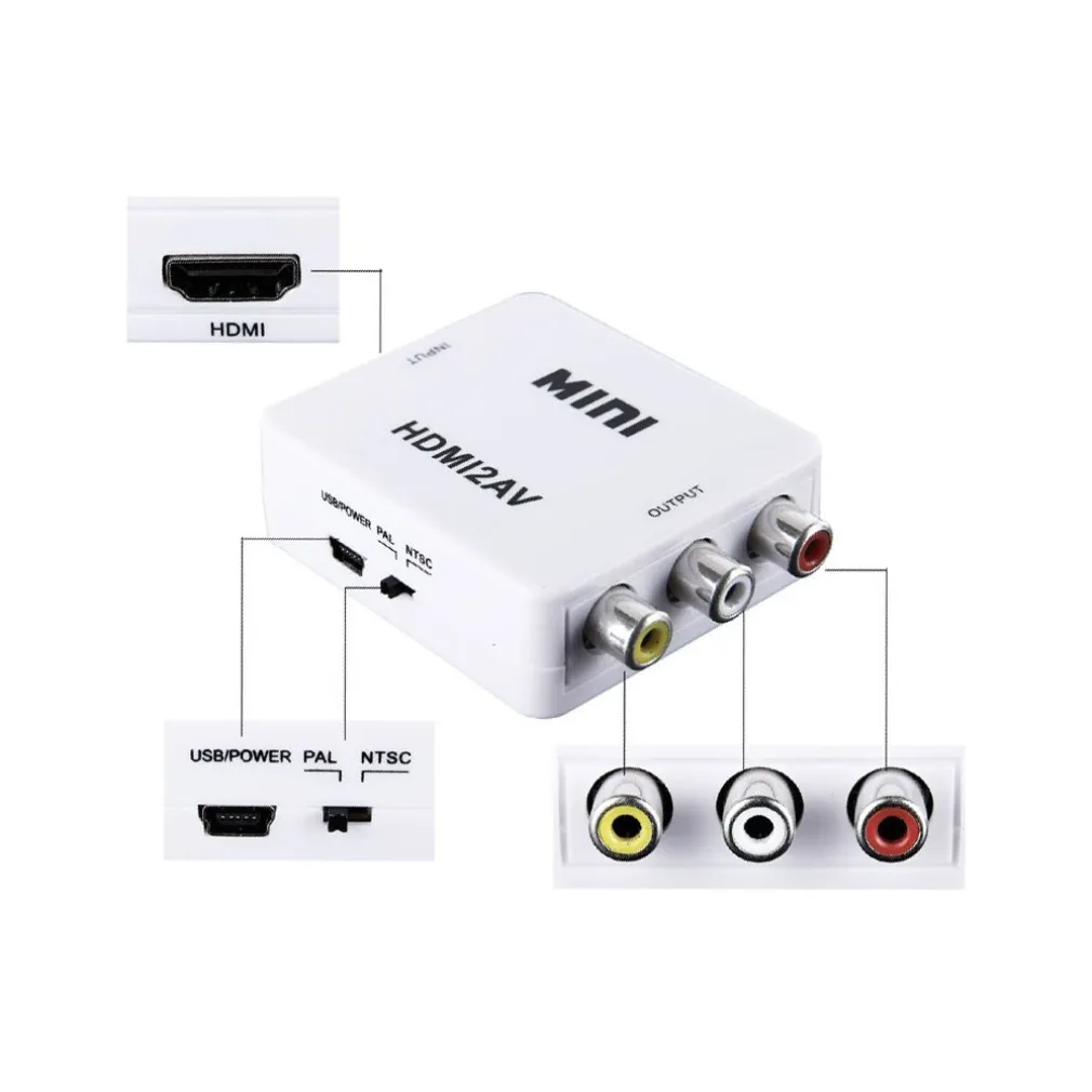 Mini adattatore/convertitore capace di trasformare un segnala in ingresso HDMI in un segnala in un uscito AV CVBS.