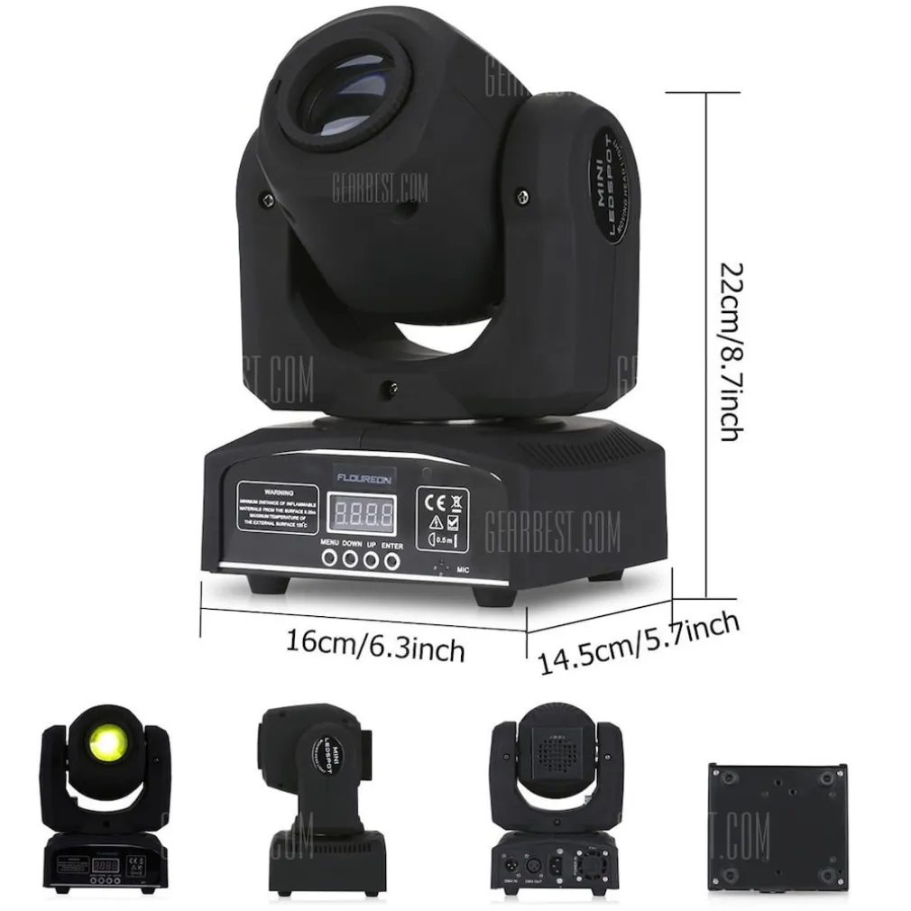 Testa mobile CREE Led spot 30 w è un mini testa mobile con una fonte di luce con un particolarissimo LED della CREE con 30 watt di assorbimento e circa 250w di resa luminosa. Proietta i propri gobos ( disegni ) anche a 25 metri di distanza. Il suo design compatto e leggero lo rende il dispositivo ideale per DJ, animatori mobili, music BAND, Pianobar, piccoli Service luci, piccoli e medi club e bar. Con 7 colori + bianco, 7 gobos + open. Effetto ruota colori, Gobo shake e ruota gobos. Rapido movimento e cambiamenti di colore per ottimi effetti di illuminazione. Modalità di funzionamento in automatico, musicale, master/slave, DMX.