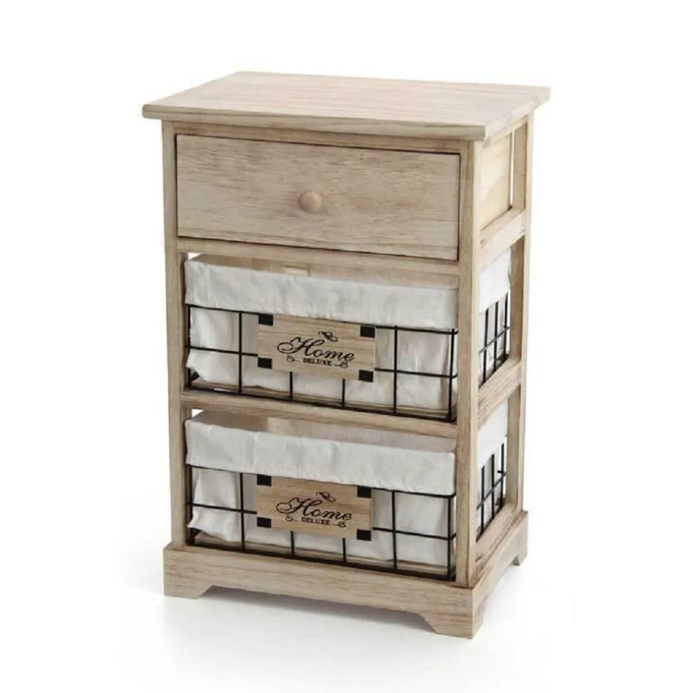 Mobile Cassettiera in Legno Naturale 3 Cassetti 37X27X58cm Decorata Ceste 787805