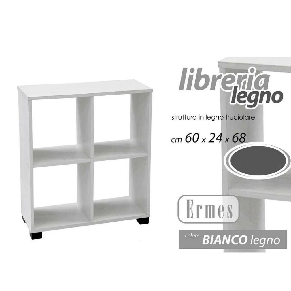 MOBILE LIBRERIA ERMES SCAFFALE BASSO 4 SCOMPARTI LEGNO BIANCO 60X24X68CM 715624